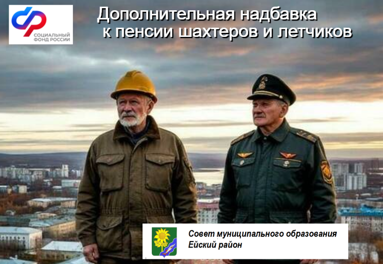 Пенсионеры из числа бывших шахтеров и летчиков получили дополнительную надбавку к пенсии. Этим категориям пенсионеров Социальный фонд России ежемесячно выплачивает доплату к обычной страховой пенсии. Она полагается за вредные, опасные, напряженные и тяжелые условия труда и назначается на основе соответствующих федеральных законов.