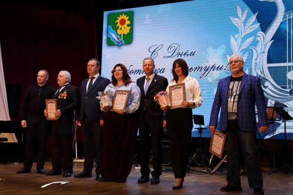 Под бурные аплодисменты коллег на сцену выходили те, чей высокий профессионализм, большой вклад в развитие культуры и многолетнюю плодотворную работу отметили Почётными грамотами и Благодарностями, в том числе Министерства культуры Краснодарского края и ЗСК. Среди награждённых депутаты районного Совета: директор ДШИ г.Ейска Елена Ивахненко и руководитель РМУК «МКДЦ» Ирина Былино.
