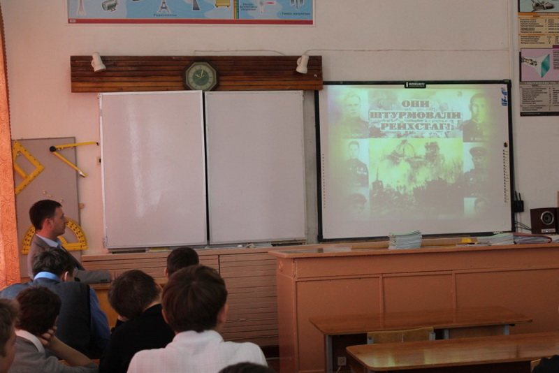 В рамках военно-патриотического воспитания молодежи, ученикам был показан военный короткометражный фильм "ОНИ ШТУРМОВАЛИ РЕЙХСТАГ". После фильма была проведена дискуссия по теме: "Что такое патриотизм?"