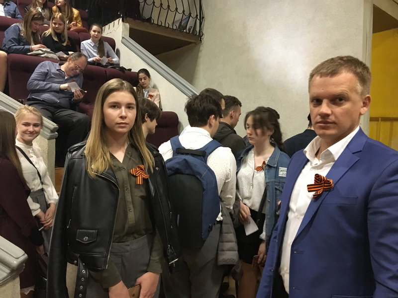Отметим, что до начала работы теста молодые депутаты совместно с волонтёрами провели акцию «Георгиевская лента», в рамках которой всем участникам были вручены ленты.