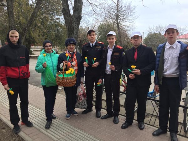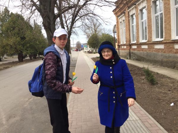 6 марта, в преддверии празднования Международного женского Дня, молодой депутат Ейского района Владислав Витюк вместе с волонтерами поздравили женщин, проживающих в станице Копанской, с наступающим праздником и подарили им тюльпаны в стиле оригами.