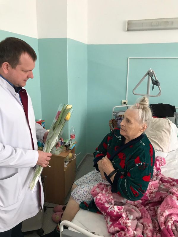 Андрей Нагайцев поздравил ветерана, блокадника Ленинграда - Силантьеву Надежду Ивановну, которая проходила лечение в Ейской ЦРБ. Молодой депутат пожелал ветерану крепкого здоровья и долгих лет жизни.