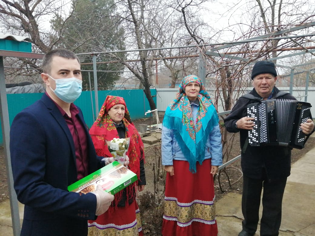 Олег Петренко, молодой депутат Кухаривского сельского поселения совместно с творческим коллективом СДК с Кухаривка поздравил уважаемых женщин поселения: Горячую Марию Михайловна - труженицу тыла, Бугаеву Нину Петровну - заслуженного учителя РСФСР, председателя Совета ветеранов - Самооценкой Татьяну Дмитриевна.