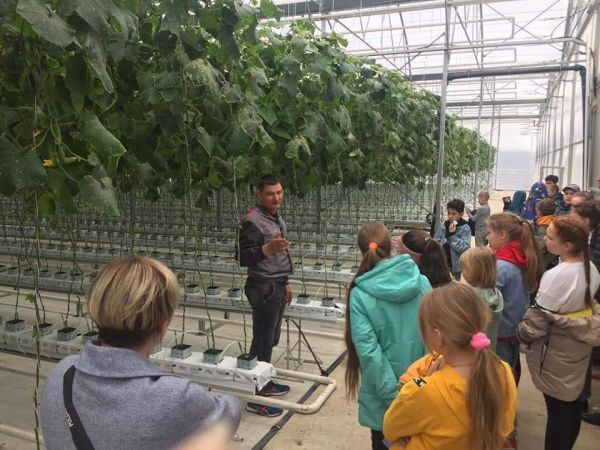Последним пунктом комплексной экскурсии стал тепличный комплекс кооператива Ейский Агросоюз. В теплицах и на полях комплекса молодёжь на практике ознакомилась с современным сельхозпроизводством.