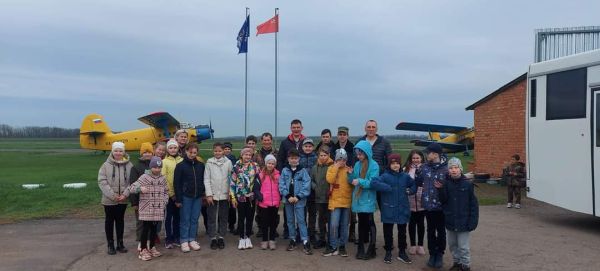 Ребята посетили базу «Крылатой Гвардии» посёлка Комсомолец. Инструктор районной общественной организации «Авиационный спортивный клуб Крылатая гвардия» Ульянов Олег со своими помощниками показали авиапарк организации и позволили ребятам посидеть за штурвалом. Воспитанники спортшколы так же осмотрели технику времен Великой Отечественной войны, на многих фронтовых машинах осколочные отметины страшной войны.