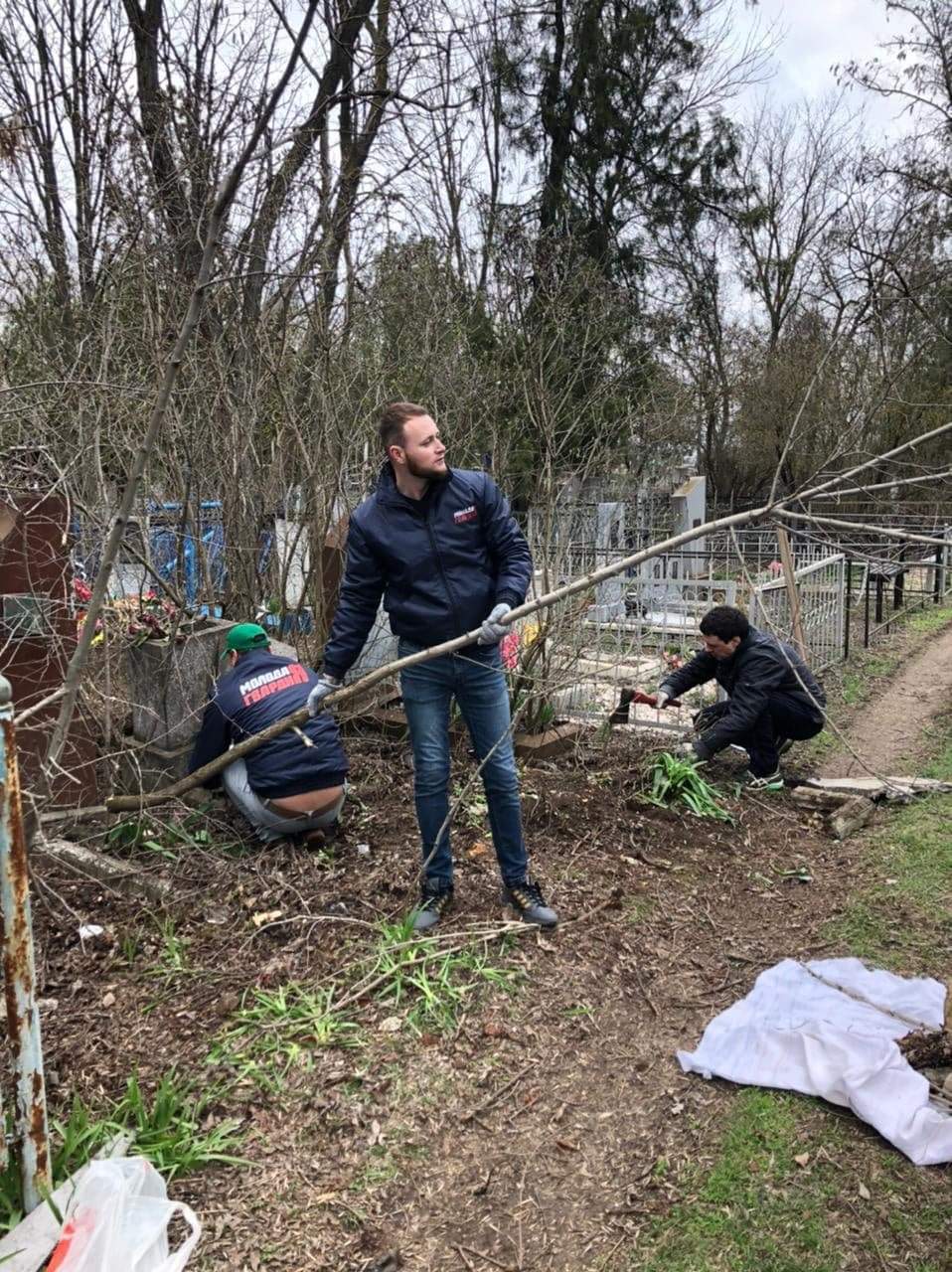 На городском кладбище работы проводят активисты районного молодежного центра под руководством Карена Маргаряна, заместителя председателя Совета молодых депутатов Ейского района. Они очистили могилы от мусора и травы, убрали весь сухостой, освободили территорию от мешавших проходу ветвей деревьев и молодой поросли.