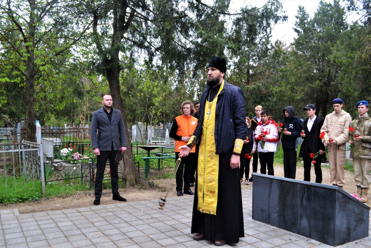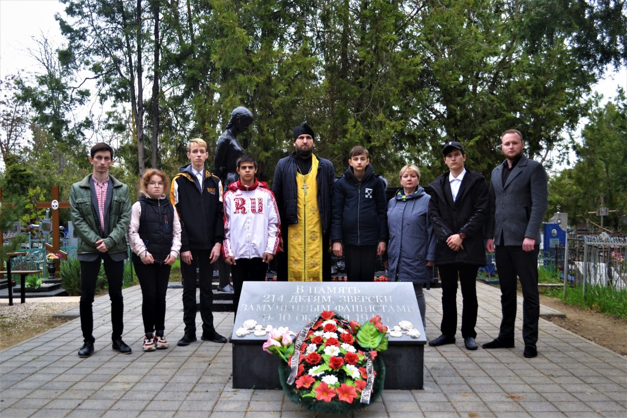 В рамках Всероссийского дня единых действий в память о геноциде советского народа нацистами и их пособниками в годы Великой Отечественной войны, заместитель председателя Совета молодых депутатов Карен Маргарян организовал и принял участие в памятном мероприятии. Совместно с неравнодушной молодежью Ейского района, кадетами ОВПО "Звезда", воспитанниками военно-патриотического клуба "Барс", а также учащимися ГКОУ школы-интерната № 2 г. Ейска зажгли свечи у братской могилы 214-ти детей, зверски замученных немецко-фашистскими оккупантами 9-10 октября 1942 года. Штатный клирик храма Архистратига Михаила Иерей Иоанн Ковалев совершил литию по невинно убиенным, после чего все почтили память о замученных детях минутой молчания.