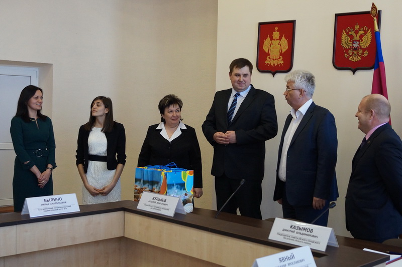 За участие и победу в Краевой интернет-викторины девушки получили памятные подарки, которые на сессии Совета Ейского городского поселения им вручили глава города Ейска Валерий Кульков, председатель Совета депутатов Ейского городского поселения Ейского района Дмитрий Казымов и председатели ТИК Ейская городская Илья Меркаленко и ТИК Ейская районная Татьяна Чернодырка.