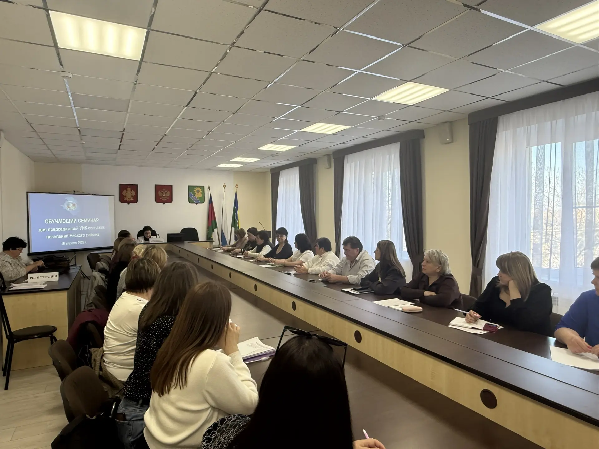 В рамках подготовки к выборам депутатов Государственной Думы Федерального Собрания Российской Федерации девятого созыва, выборов глав Александровского и Моревского сельских поселений Ейского района 16 апреля 2026 года председателем территориальной избирательной комиссией Ейская районная Татьяной Чернодырка проведен обучающий семинар с председателями участковых избирательных комиссий. На семинаре с приветственным словом к председателям комиссий обратился глава муниципалитета Роман Бублик. В ходе обучения председатели участковых избирательных комиссий ознакомились с изменениями в законодательстве Российской Федерации, положениями и организацией деятельности комиссий.