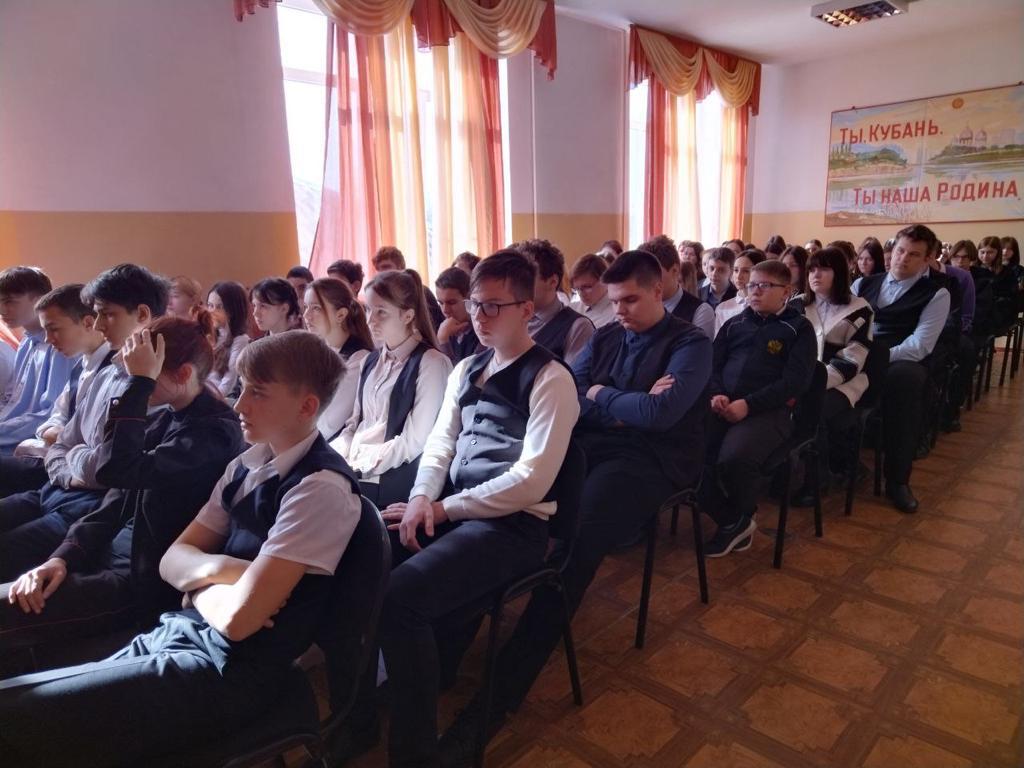 06 апреля 2023 г в МБОУ СОШ №3 им. генерал- фельдмаршала М.С. Воронцова г. Ейска для учащимися 9-х и 10-х классов проведено мероприятие "Молодежь Кубани за ЗОЖ. Жизнь без наркотиков" в рамках 1-го этапа оперативно-профилактической операции "Дети России - 2023".
