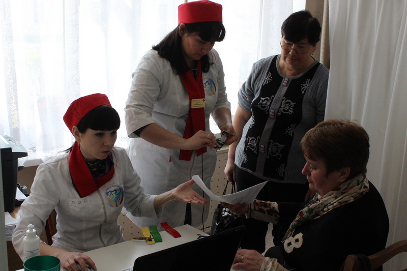 измерение артериального давления - 196 чел.; ВГТ - 120 чел.; лабораторные исследования - 70 чел.; гинеколог - 66 чел.; невролог - кардиолог - 60 чел.; ЭКГ - 60 чел.; онколог - 43 чел.; фтизиатр - 37 чел.; окулист - 83 чел.; УЗИ - 64 чел.