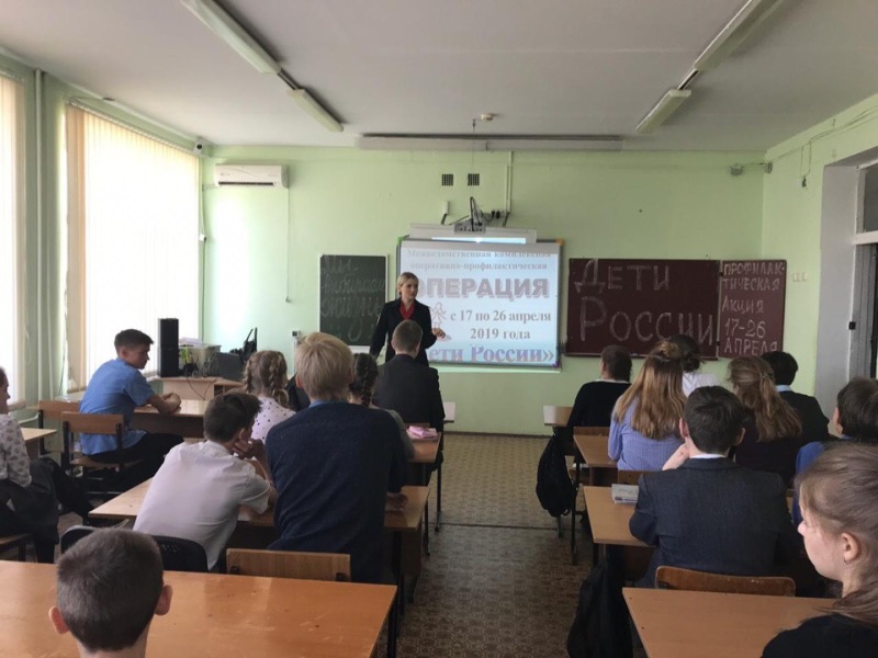 На территории Ейского района продолжается профилактическая работа в рамках проведения первого этапа межведомственной комплексной оперативно-профилактической операции «Дети России-2019». В школах ст. Должанской, с. Воронцовка, пос. Степной, с. Александровка и пос. Широчанка старшим оперуполномоченным отдела по контролю за оборотом наркотиков Отдела МВД России по Ейскому району проведены мероприятия антинаркотической направленности с целью информирования несовершеннолетних о правовой ответственности за незаконный оборот наркотиков, предусмотренной законодательством РФ.
