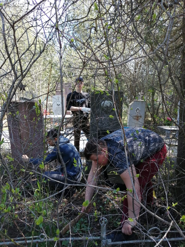 В преддверии великого праздника Дня Победы студенты Ейского полипрофильного колледжа в рамках акции «Город помнит своих героев» продолжают приводить в порядок могилы ветеранов Великой Отечественной войны на городском кладбище. Вместе с сотрудниками социально-воспитательного отдела они очистили плитки и прилегающие территории мест захоронений от мусора, убрали сухую листву, уничтожили сорняки и поросли деревьев.