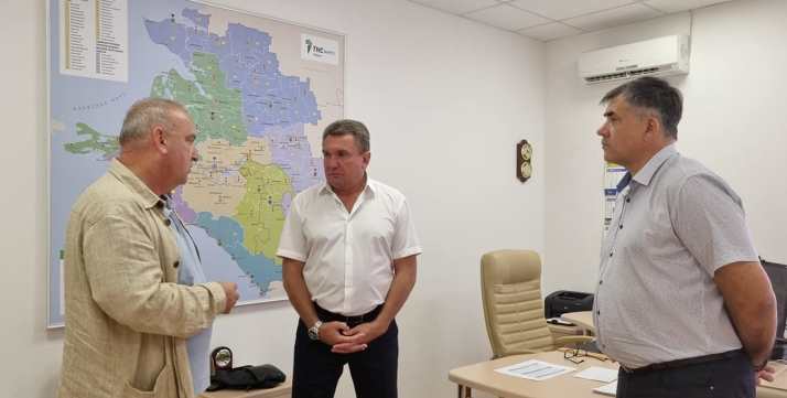 В текущем году головное предприятие ресурсоснабжающей организации продолжает активно развивать свои онлайн-сервисы. Они делают взаимодействие с клиентами более удобным и оперативным. Это отмечают сами абоненты. В ейском офисе предприятия, которое обслуживает жителей нашего района, также все подчинено тому, чтобы прием клиентов проходил в комфортных условиях. С ними, а также о зоне ответственности, а это 11 муниципалитетов и порядка 60 тысяч абонентов, руководителю нашего муниципалитета рассказал директор Ейского филиала Евгений Крутько. Виктор Ляхов вместе со своим заместителем Геннадием Кухарь сегодня побывал на ул.Толстого г.Ейска, где находятся офисы сразу двух ресурсоснабжающих организаций, в том числе филиала ПАО «Россети Кубань».