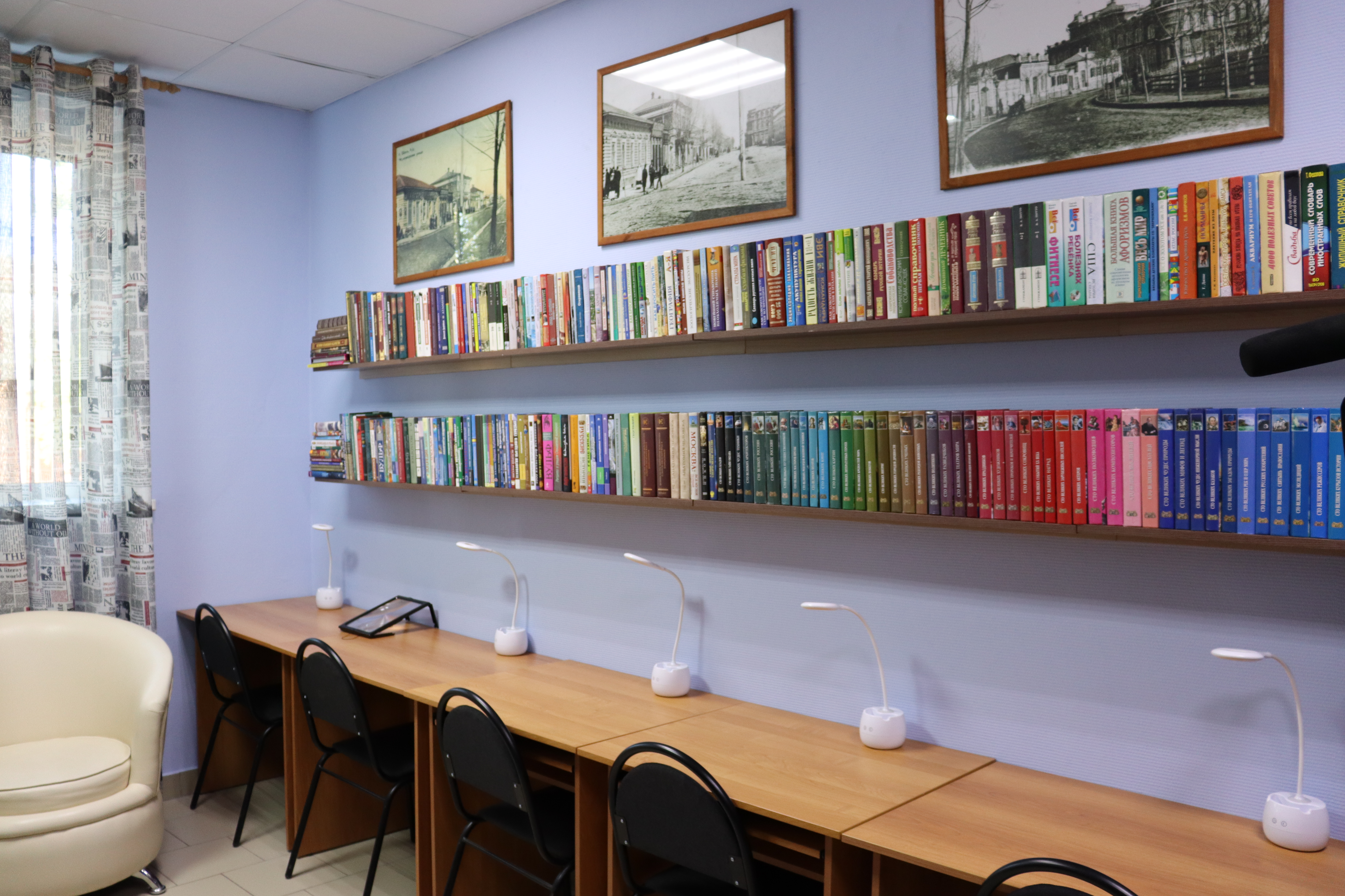 В читальном зале обновлены рабочие места, улучшено освещение, оформлено место для работы на компьютере маломобильных граждан, где на ноутбук установлена программа многократного увеличения шрифта книг для плохо видящих. Такое же рабочее место со специализированной программой оборудовано и для людей плохо слышащих. В рамках программы библиотека оснащена новым компьютерным оборудованием для индивидуальной работы, самой современной оргтехникой, фото, видео и звуковой аппаратурой для проведения творческих вечеров и мероприятий. А в зале с художественной литературой оборудована зона для самых маленьких от 0 до 6 лет. Теперь родители могут спокойно выбирать литературу из пополненного книжного фонда, не переживая за своих малышей. Сдать же книгу можно в любое удобное для читателя время, независимо от времени работы библиотеки. Эта услуга предоставляется круглосуточно.