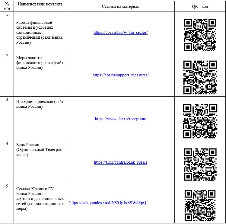 С целью информирования населения по вопросам финансового рынка в условиях санкционных ограничений Банк России публикует материалы о специальных мерах защиты экономики, о работе финансовой системы и другие материалы.