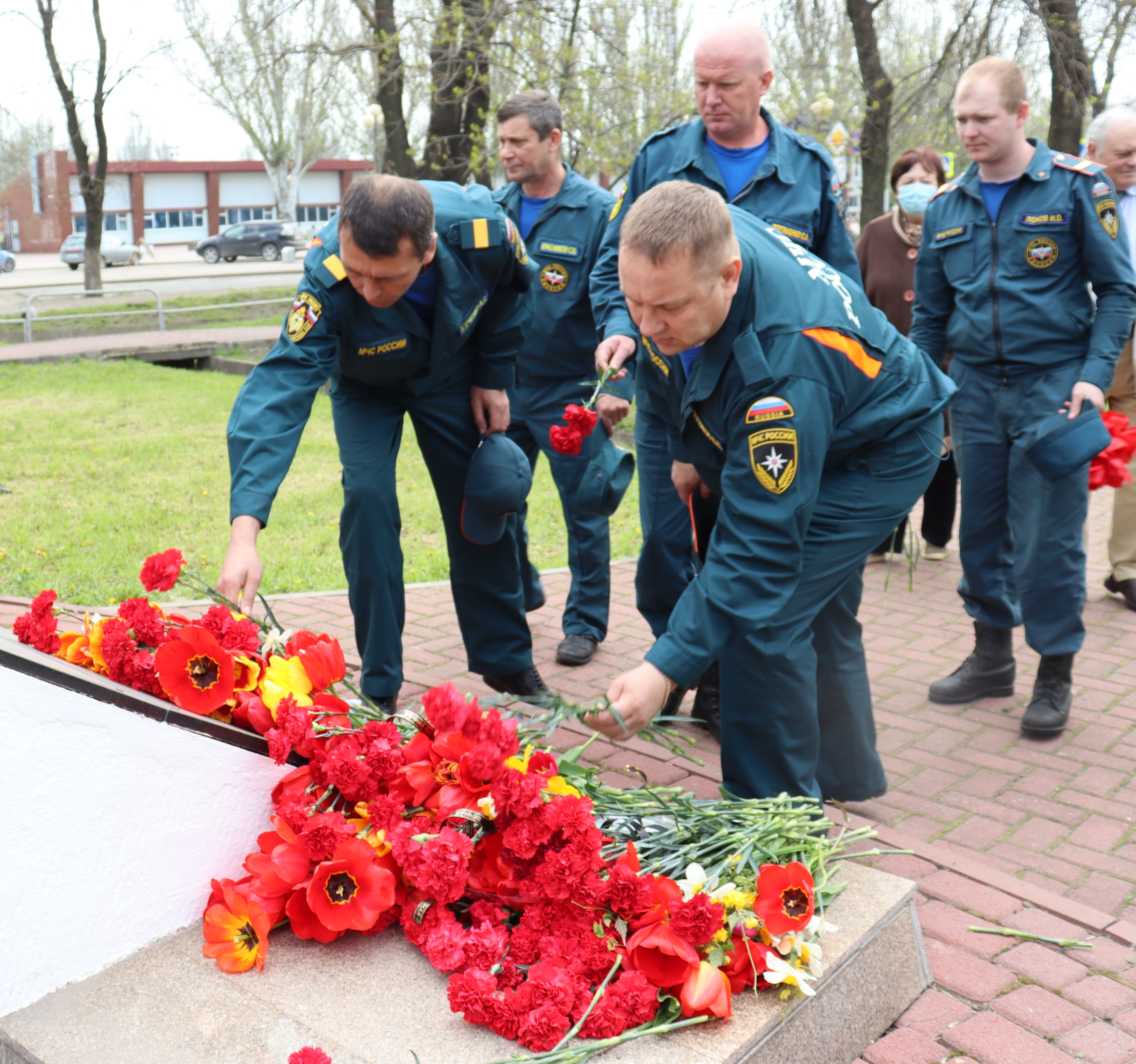 Минутой молчания под счет метронома почтили память героев-чернобыльцев, к подножью мемориала легли цветы.