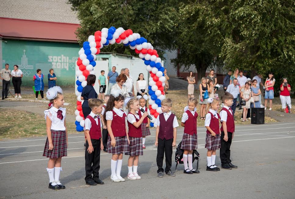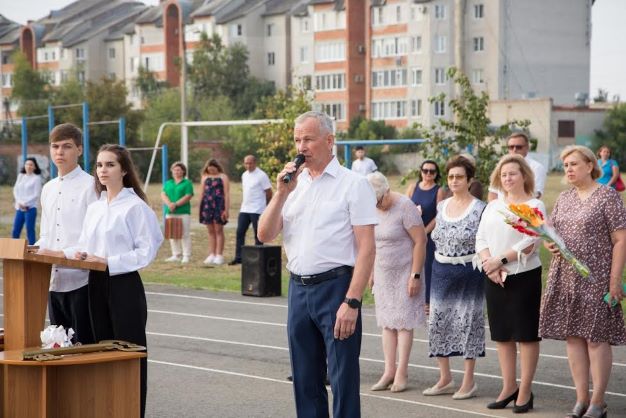 На торжественной линейке их приветствовал заместитель главы Ейского района Юрий Ковров, педагогический коллектив, обучающиеся и родители.