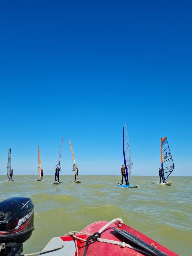 Приветствовали их участников на ейской земле заместитель главы муниципалитета Юрий Ковров и бессменный организатор спортивного мероприятия руководитель «Ейской школы виндсёрфинга» Виталий Владивостоков. Мероприятие проходит при поддержке Всероссийской федерации парусного спорта и спортивного клуб-отеля «Акватория Лета». Сегодня же стартуют и первые гонки.