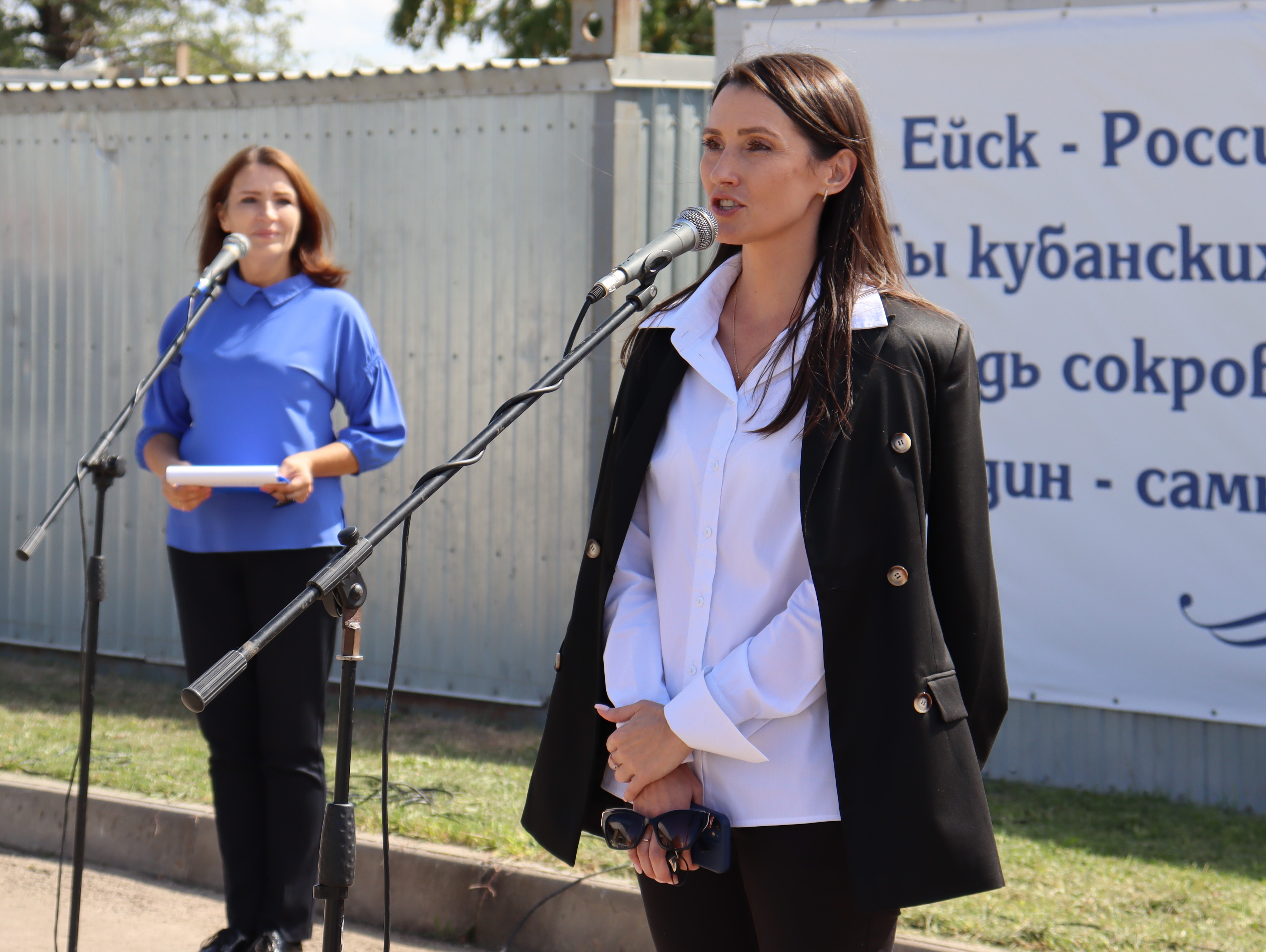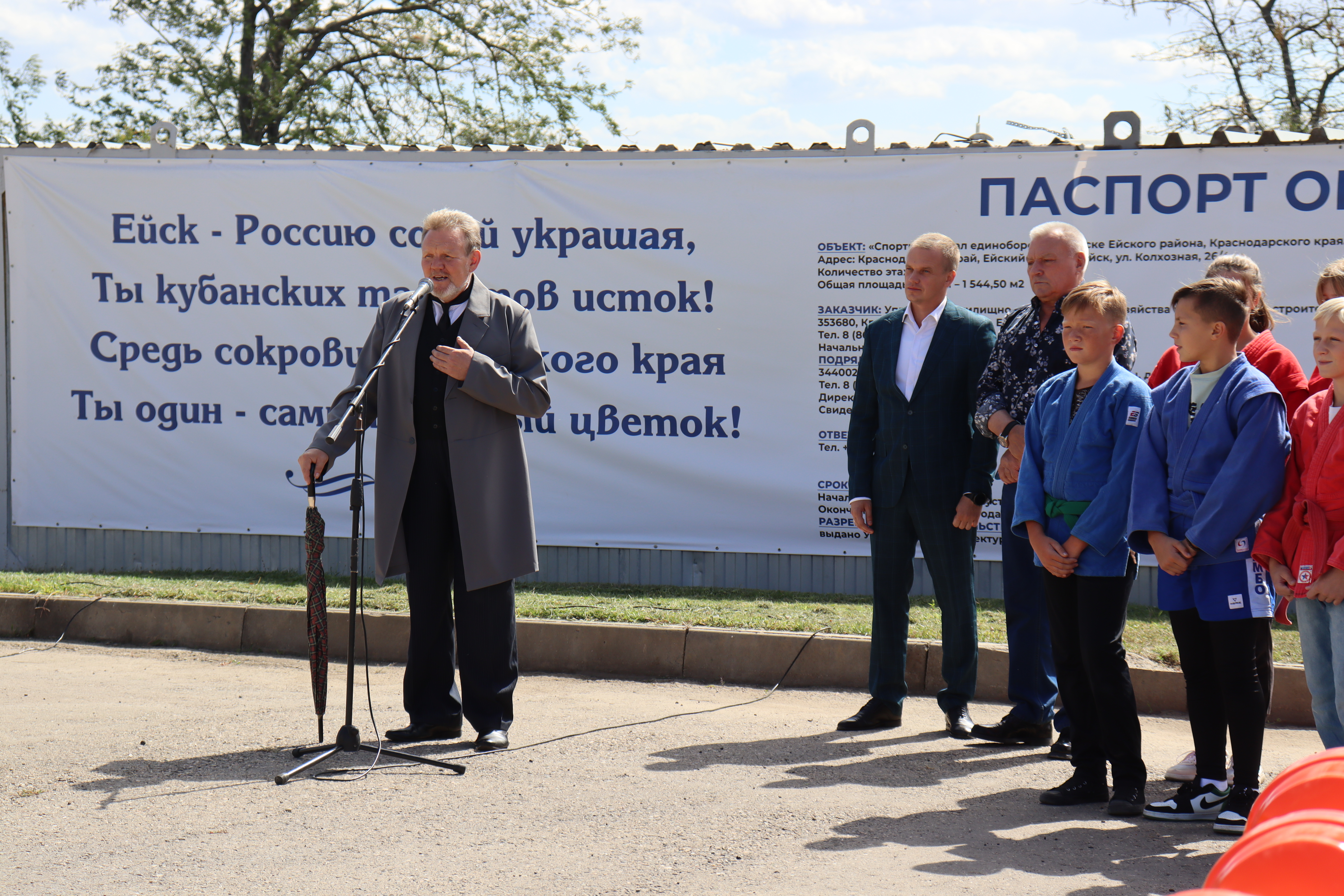 На территории, прилегающей к будущему спортивному объекту на ул.Казачьей, всех приветствовал городской голова «Василий Ненашев» (в исполнении артиста ГДК Николая Долгих), на чьи годы руководства в 1862—1915 гг. выпал расцвет г.Ейска. Всеми уважаемого голову горожане избирали 4 раза подряд, тем самым выражая своё доверие и одобрение его деятельности. Василий Васильевич передал эстафету слова нынешнему руководителю – и.о.главы муниципалитета Роману Бублику. В следующем году город отметит свой 175-летний юбилей и новый спортивный объект, уверен Роман Юрьевич, лучший подарок для всех нас.