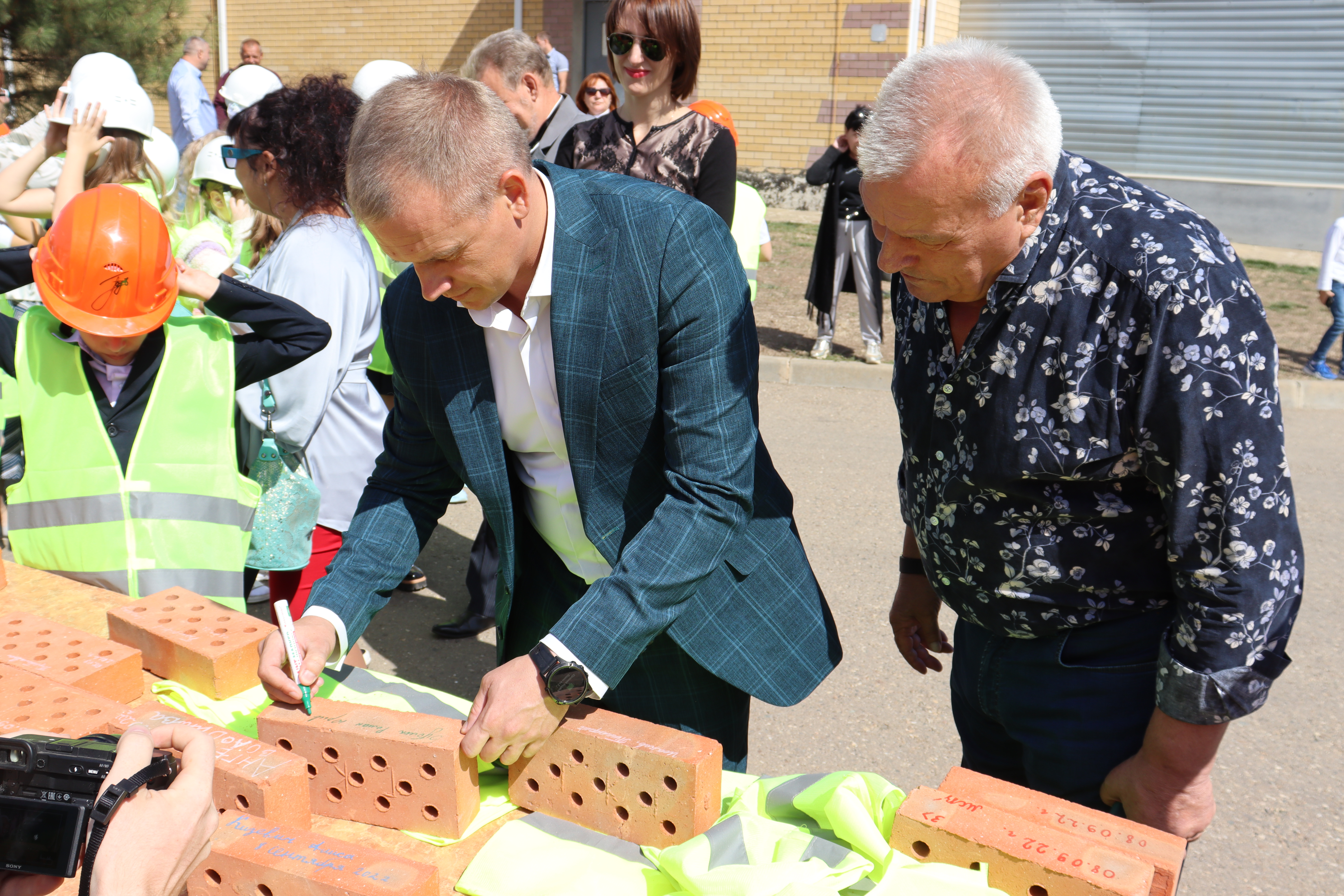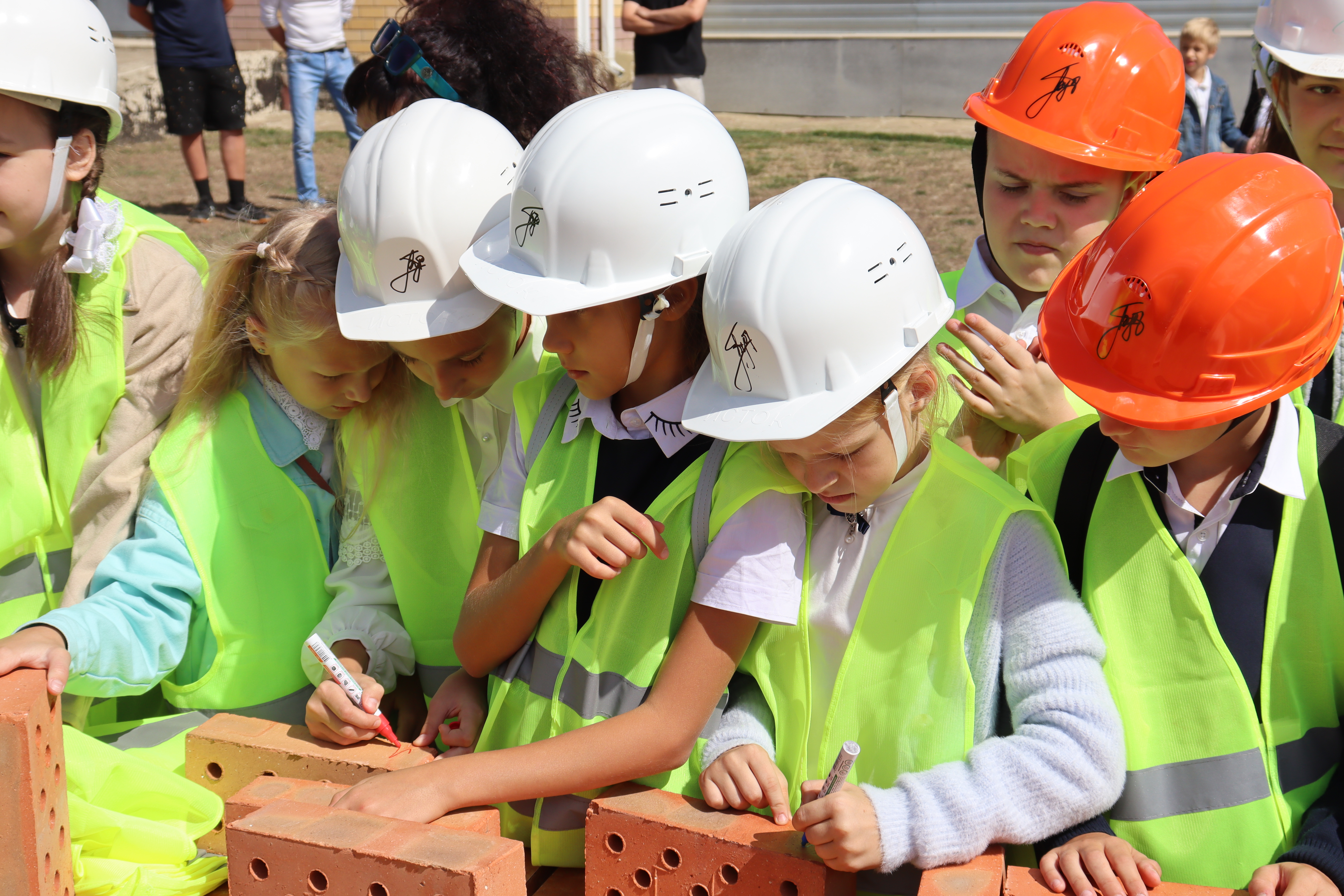 25 кирпичей, подписанных школьниками и Романом Бубликом, переданы строителям. Они будут уложены в основание спортивного комплекса. В память об этом знаменательном событии ребятам остались жилеты и каски с автографом Романа Юрьевича, подаренные им подрядной организацией. Но так как это торжественное мероприятие было еще и уроком истории о развитии нашего города и знакомства с теми, кто работает на его благо, дети получили домашнее задание - нарисовать рисунок. Лучшие работы будут отмечены и займут место на стенде спортивного комплекса восточных единоборств г.Ейска.