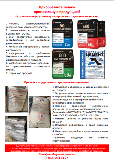 Управление ЖКХ и КС администрации муниципального образования Ейский район доводит до сведения всех жителей, строительных организаций и торговых объектов района! На территории Краснодарского края участились случаи незаконного оборота фальсифицированного тарированного цемента!