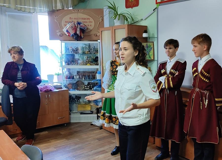 Инспектор ОГИБДД Валерия Ходаковская поздравила с 85-летием образования Краснодарского края обучающихся лицея №4 г.Ейска