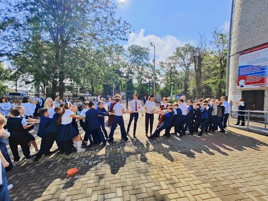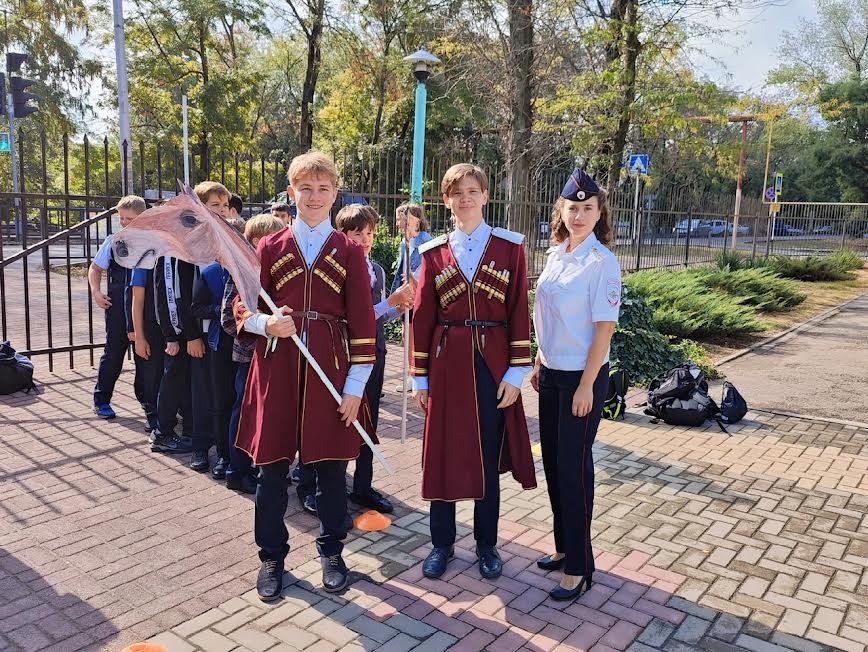 На переменах ребята вместе с инспектором участвовали в викторинах и «Кубанских забавах: «Ручеек» и перетягивание каната.