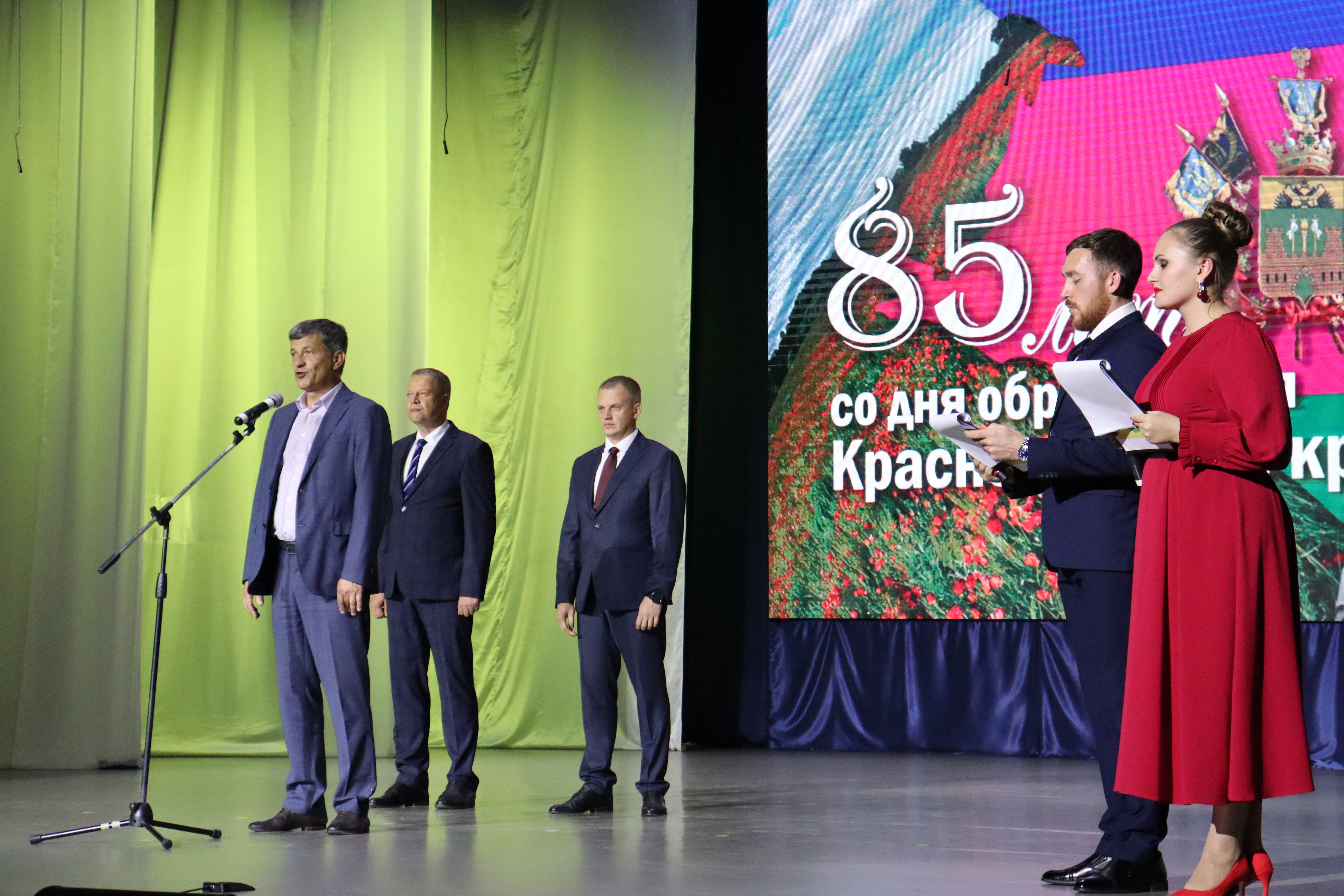 Концертную программу этого вечера открыл народный вокально-хореографический коллектива «Фортуна». С 85-й годовщиной образования Краснодарского края всех ейчан поздравил и.о.главы Ейского района Роман Бублик, депутат ЗСК Сергей Белан и мэр города Ейска Дмитрий Кияшко. Они пожелали землякам благополучия, мира и процветания нашей малой Родине.