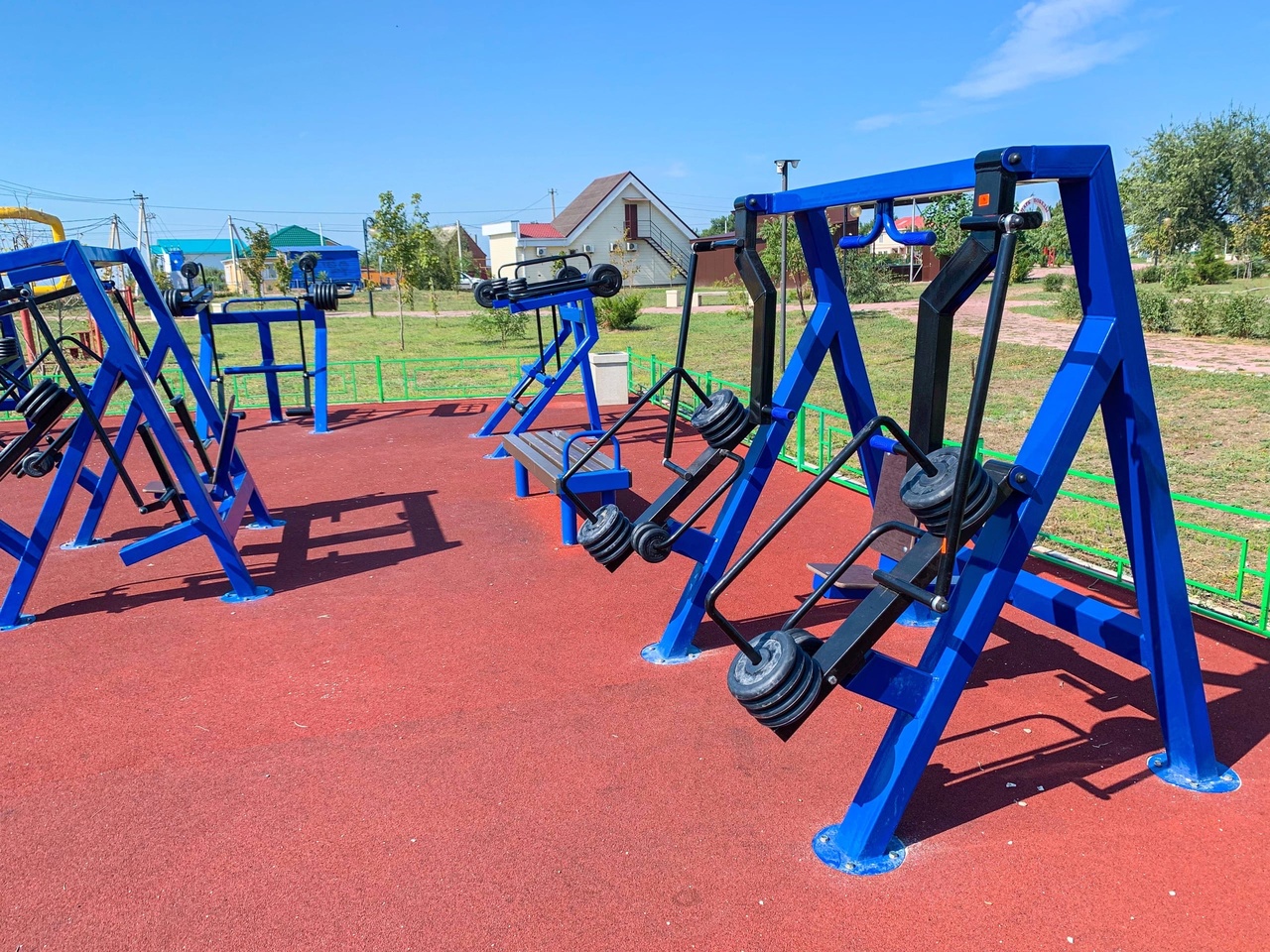 Спортивная площадка находится в парке Победы станицы. Подрядной организацией ООО «Уральские металлоконструкции» произведен монтаж 17 уличных тренажеров. Приобретены и установлены они за счет средств курортного сбора.