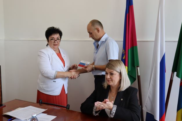 На 32 сессии народных депутатов Ейского сельского поселения вновь избранному главе Андрею Белецкому вручено удостоверение