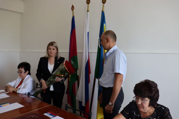 Из 20 депутатов поселения на сессию прибыли 16. Кворум был соблюден и сессию открыли. Первой выступила председатель ТИК Ейская районная Татьяна Чернодырка, которая проинформировала присутствующих об итогах единого дня голосования. Он прошел 11 сентября 2022 года.