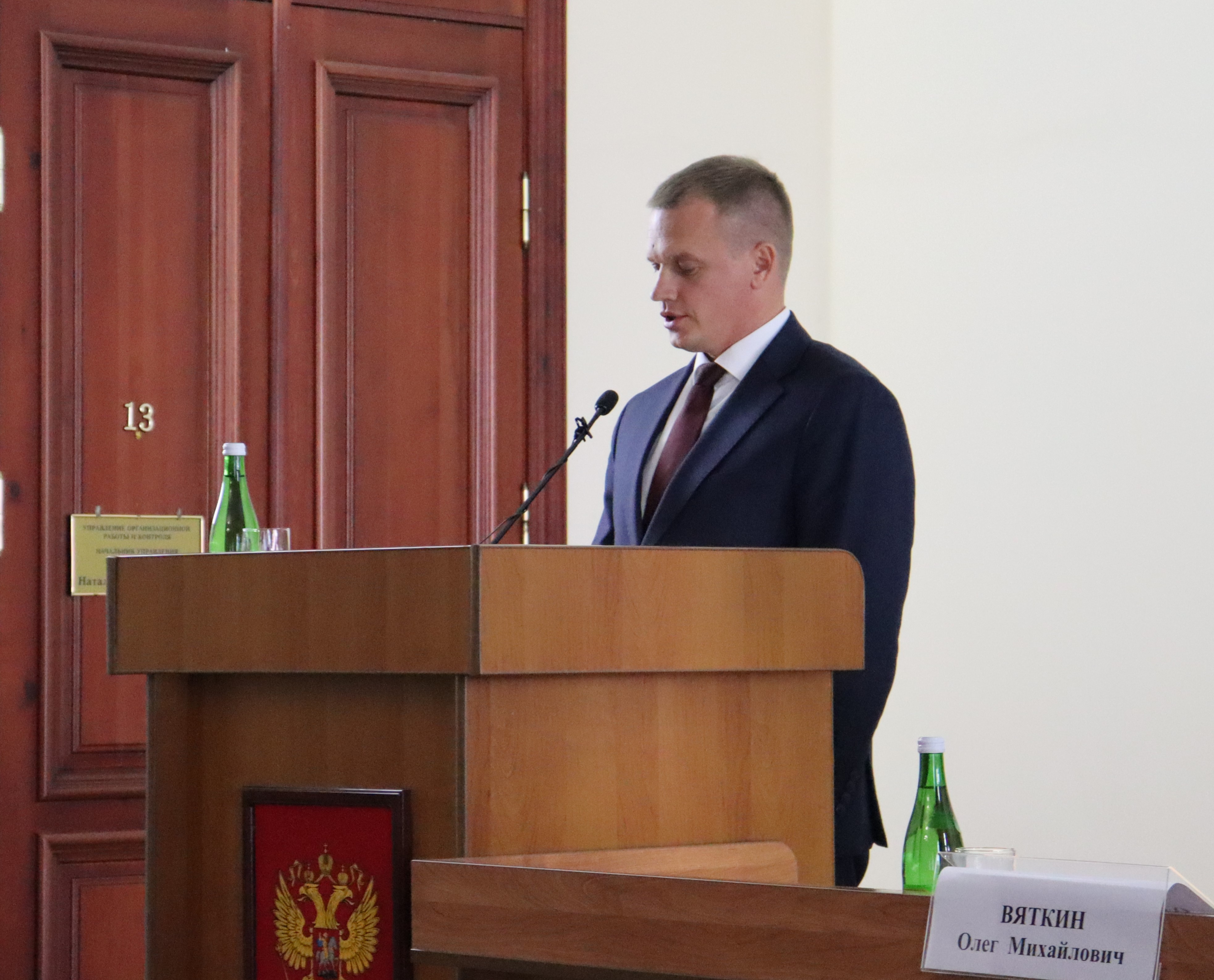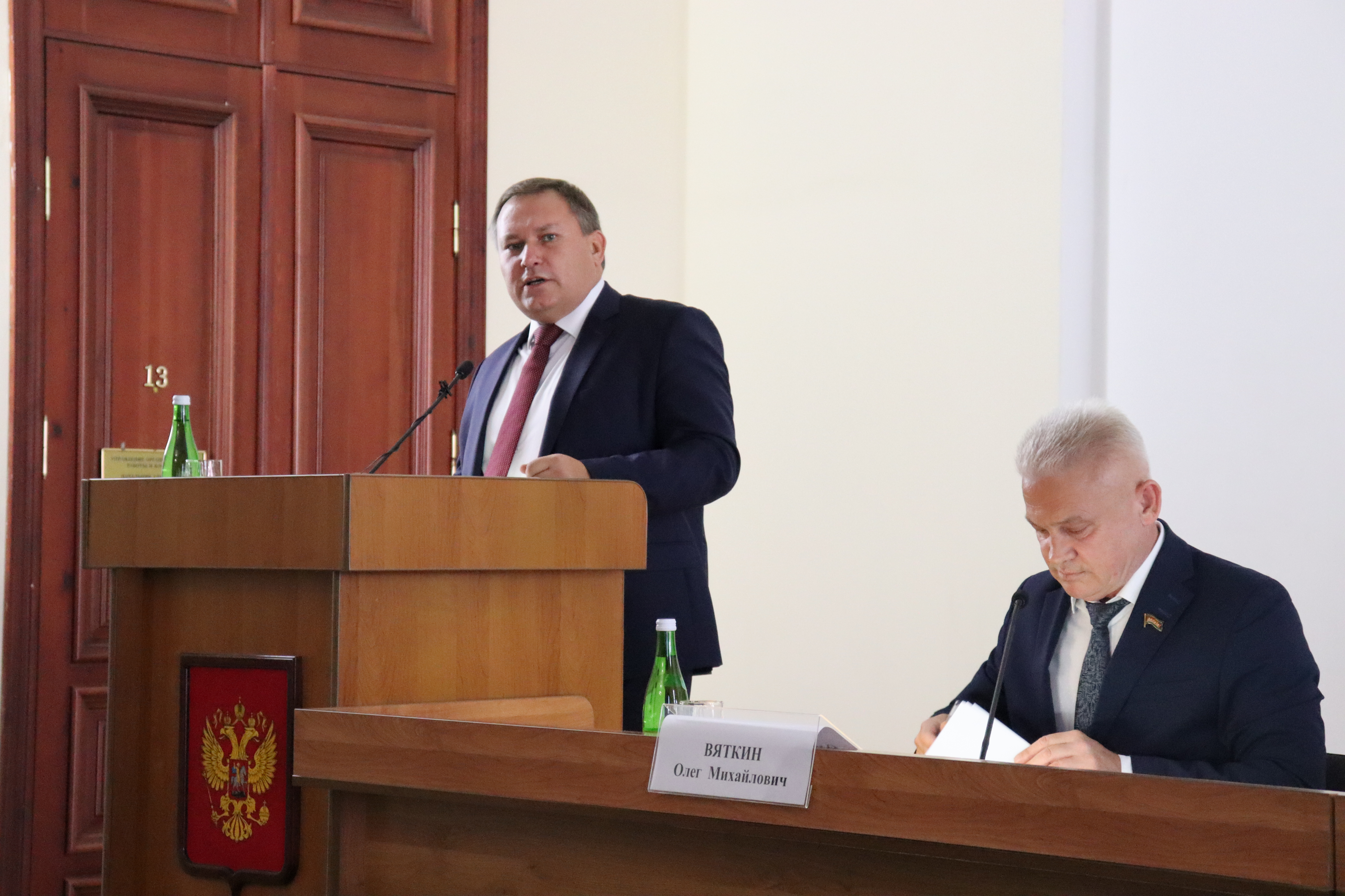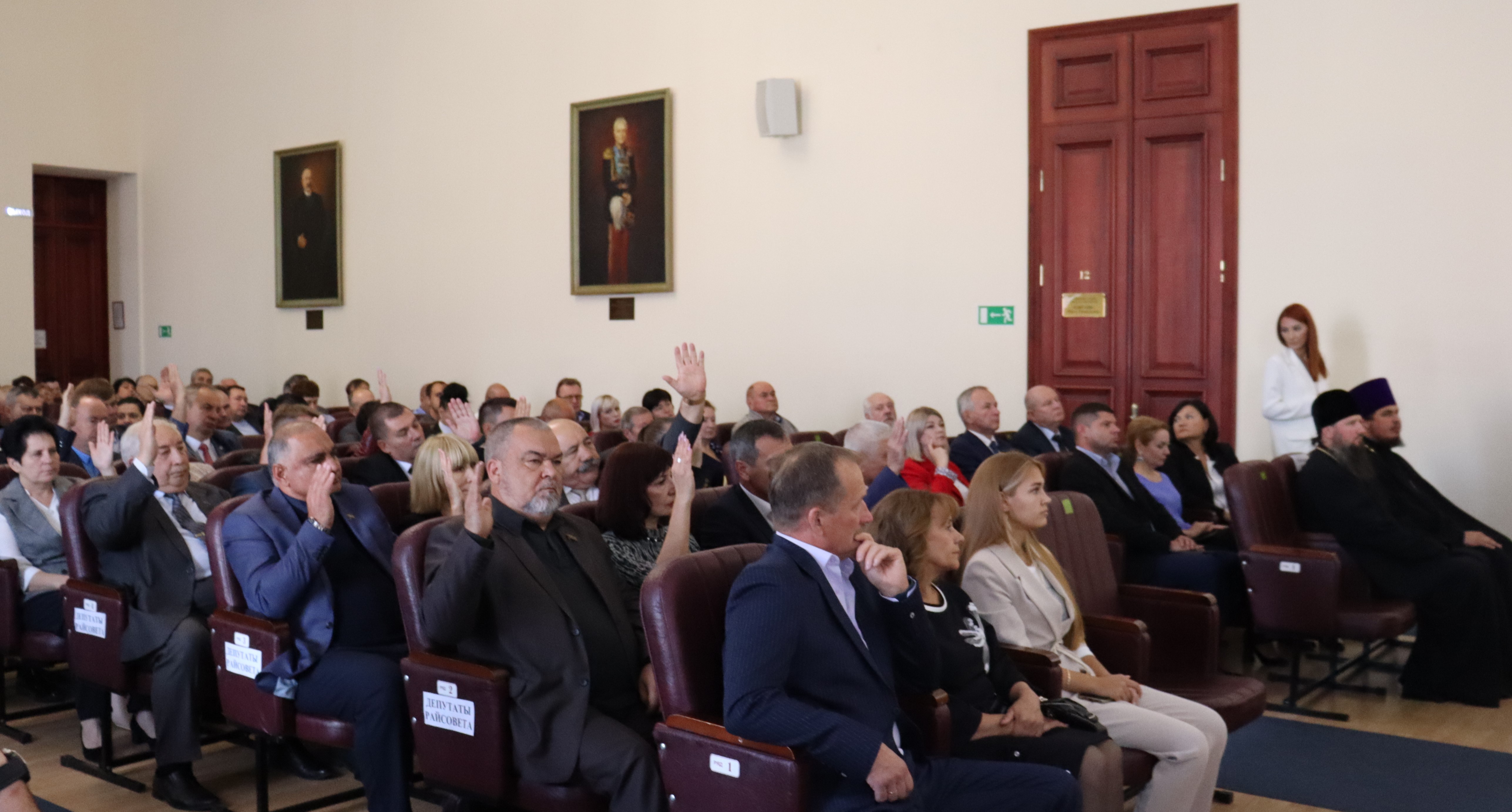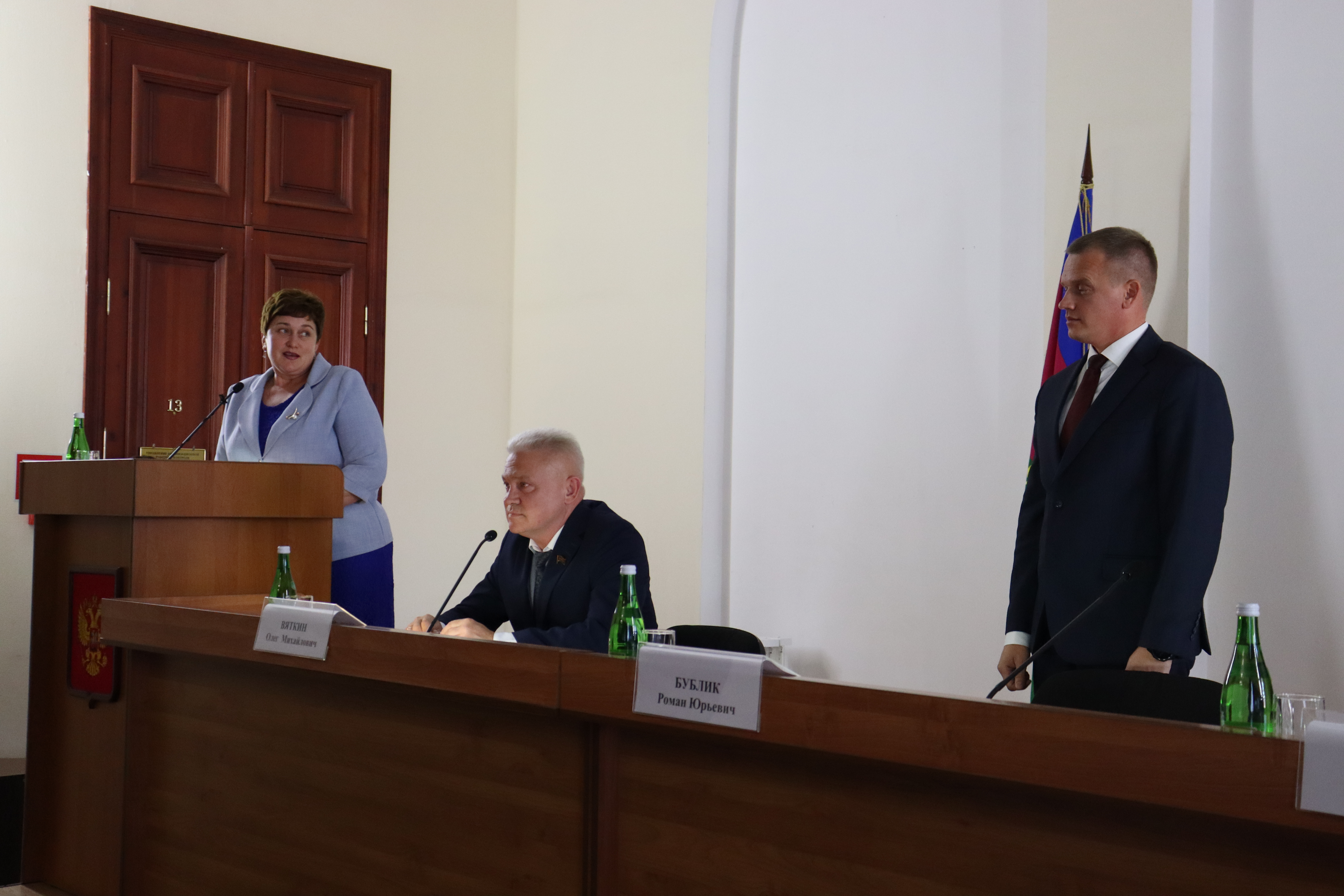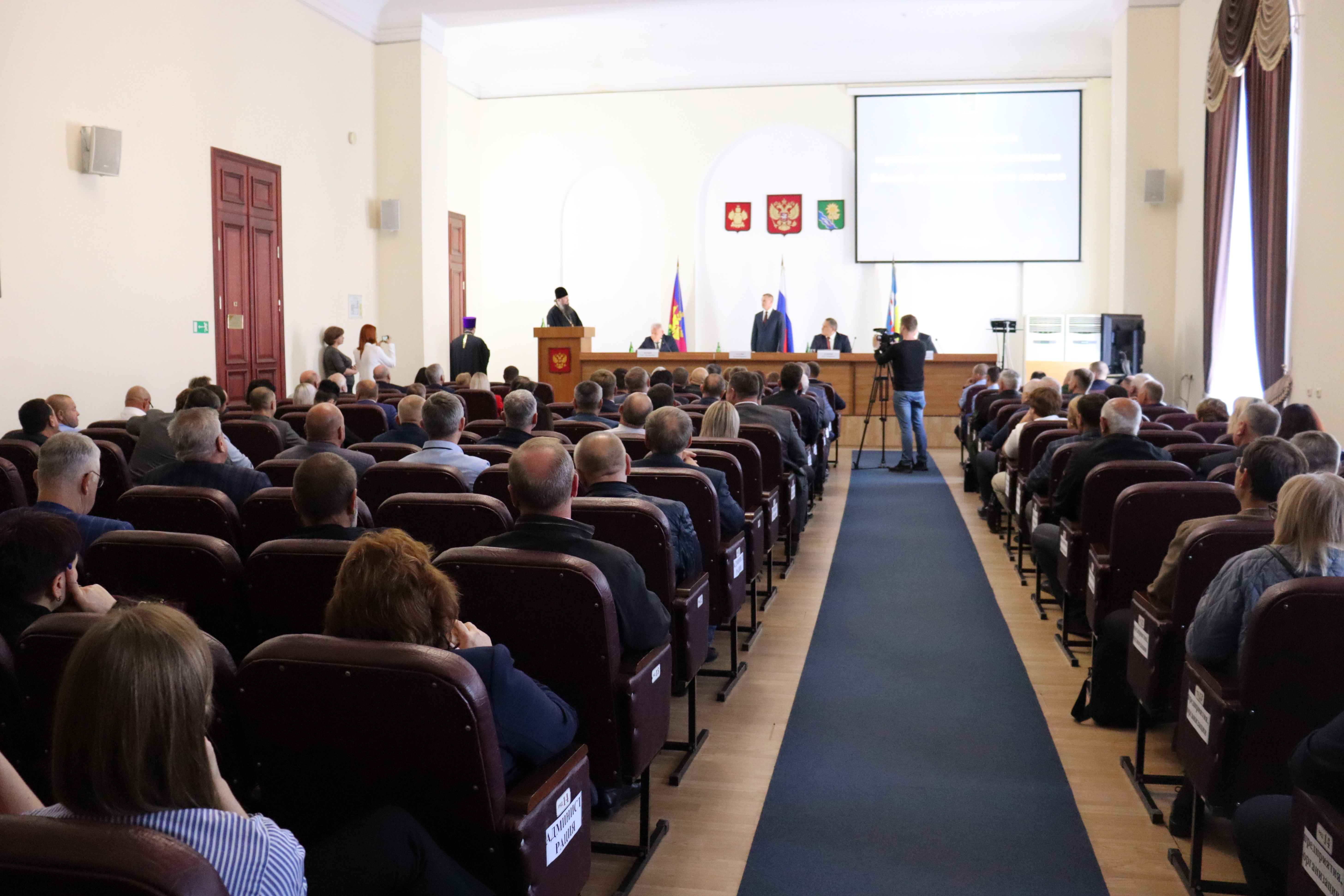 Сегодня в большом зале заседаний администрации Ейского района состоялась 2 внеочередная сессия депутатов Совета МО Ейский район 7 созыва. Открыл ее вновь избранный на должность председателя Олег Вяткин. В президиуме: и.о.главы муниципалитета Роман Бублик, депутат ЗСК Сергей Белан и руководитель департамента по обеспечению деятельности мировых судей Краснодарского края Олег Буцкий. Среди присутствующих в зале: представители Церкви, межрайонной прокуратуры, полиции, бизнеса и общественности, сотрудники администраций города и района, главы поселений, СМИ и другие.