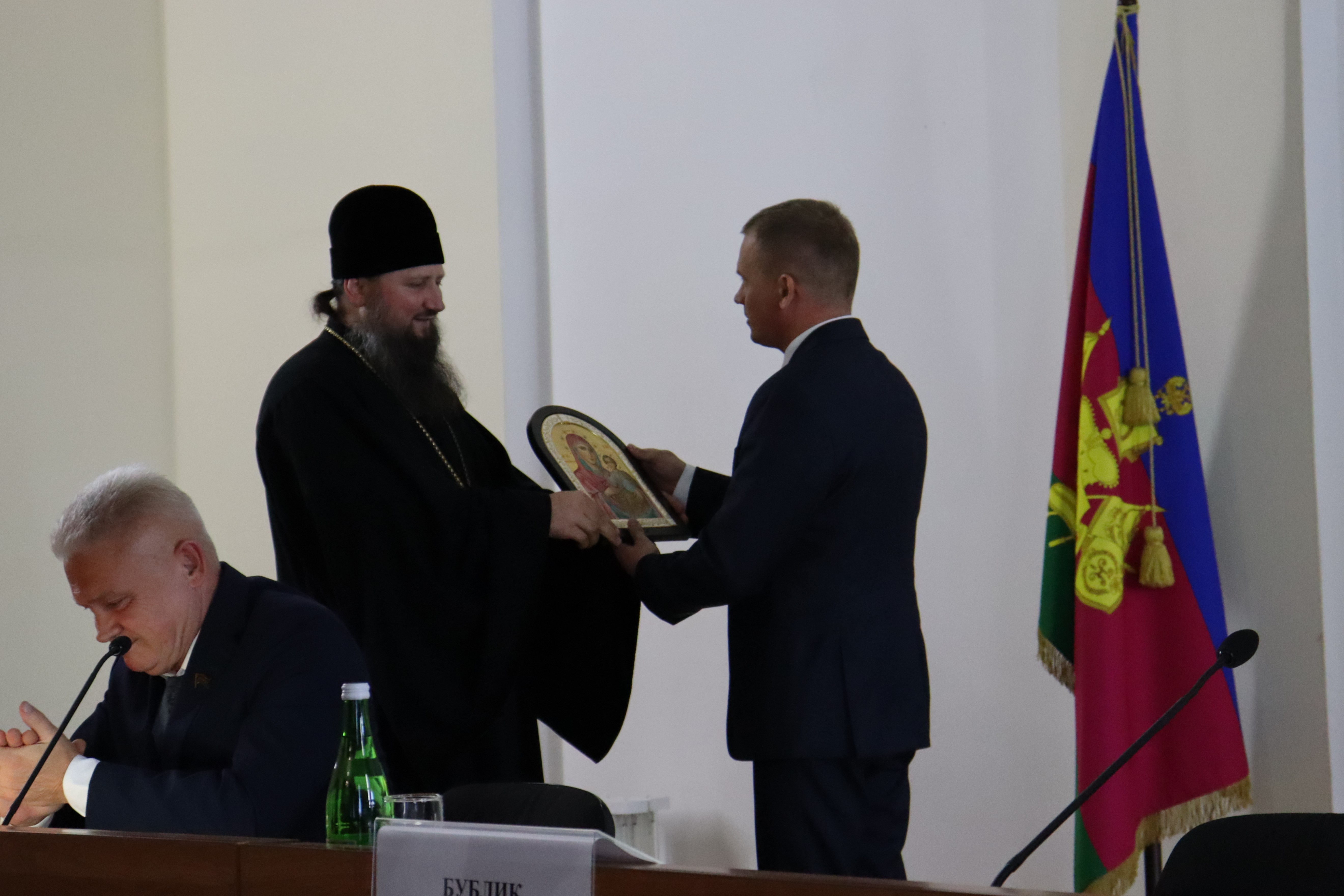 Первым поздравил с вступлением в должность Романа Юрьевича от имени губернатора Краснодарского края Вениамина Кондратьева представитель края. Олег Буцкий зачитал приветственный адрес и торжественно вручил удостоверение главы муниципалитета. К поздравлениям от депутатского корпуса края и района присоединились Сергей Белан и Олег Вяткин. Благословил на плодотворную работу нового руководителя епископ Ейский и Тимашевский Павел. Он отметил, что Роман Бублик был избран на должность 21 сентября 2022 г. - в день Рождества Пресвятой Богородицы и это хорошее начало пути.