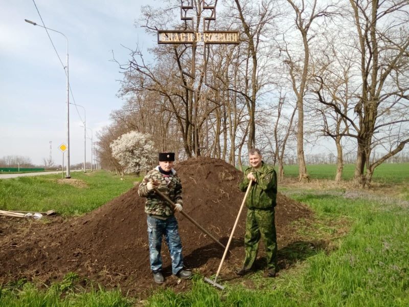 Накануне грядущих праздников станичники активно приступили к наведению санитарного порядка на придомовых, а также общественных территориях. Свою лепту в общее дело внесли казаки. Они подсыпали голгофу и покрасили буквы на Поклонном кресте ст.Копанской, который установлен при въезде в станицу со стороны Каневского района.
