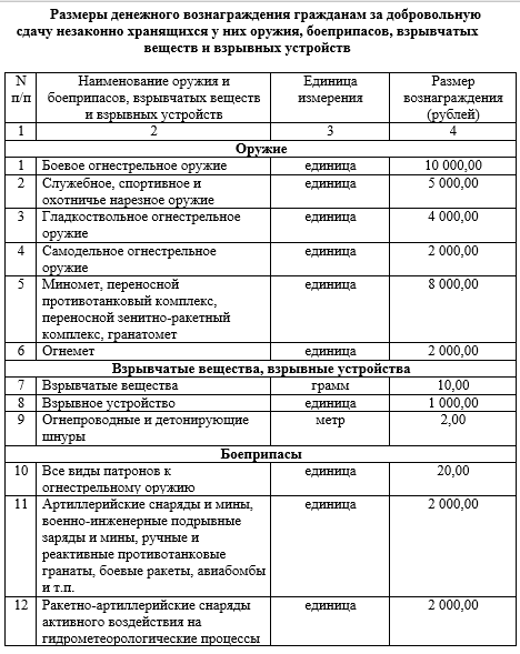 В целях предупреждения факторов, способствующих совершению преступлений на территории г. Ейска и Ейского района с использованием незарегистрированного огнестрельного оружия, в соответствии с постановлением главы администрации (губернатора) Краснодарского края от 16 апреля 2019 года № 209 «О выплате денежного вознаграждения гражданам за добровольную сдачу незаконно хранящихся у них оружия, боеприпасов, взрывчатых веществ и взрывных устройств» граждане, имеющие в незаконном хранении оружие, боеприпасы, взрывчатые вещества, взрывчатые материалы и взрывные устройства могут добровольно сдать их на возмездной основе в органы внутренних дел или Росгвардии.