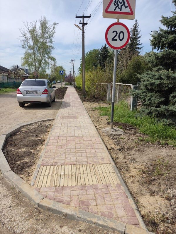 Завершены работы по обустройству тротуара и парковочного кармана вблизи детского сада п. Садового Ейского района