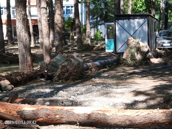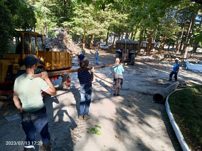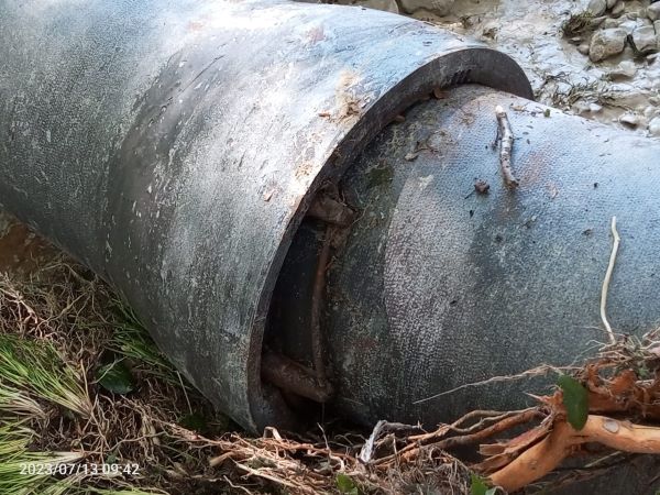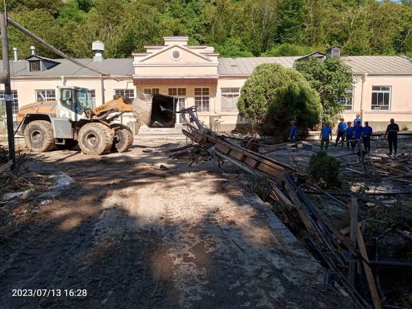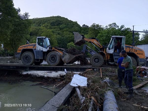 Стихия обрушилась на Туапсинский район в ночь на 12 июля 2023г. Устремившиеся со склонов бурлящие потоки воды превратили улицы пригородных поселков в бушующие реки, сметающие все на своем пути. Всего за 3 часа выпала двухмесячная норма осадков. В числе пострадавших населённых пунктов оказался и маленький курортный поселок Тюменский, расположенный у побережья Черного моря, в ущелье Казачья Щель в 11 км от районного центра. Дороги размыло и завалило деревьями, подтоплены жилые дома. Бурным потоком воды снесло и чугунный водопровод диаметром 300 мм через реку Казачка. Со вчерашнего дня специалисты ГУП КК «Кубаньводкомплекс», совместно с работниками МУП «ЖКХ г. Туапсе» приступили к восстановлению разрушенного магистрального водовода. Будет смонтирован новый трубопровод протяженностью 150 м из пластиковых труб, диаметром 300 мм.