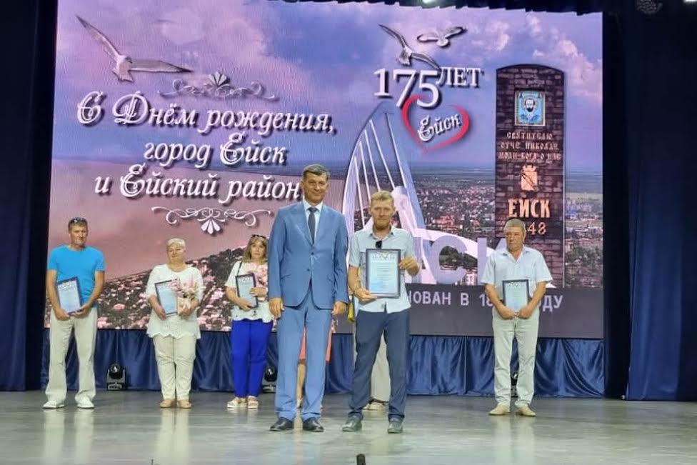 В честь 175-летия города Ейска и Ейского района в торжественной обстановке на сцене городского Дворца культуры им А.А. Колесникова прошло награждение лучших представителей отрасли ЖКХ, образования, здравоохранения, культуры, спорта. Сотрудники ремонтно-эксплуатационного управления «Ейский групповой водопровод» ГУП КК «Кубаньводкомплекс» – в списке лучших.