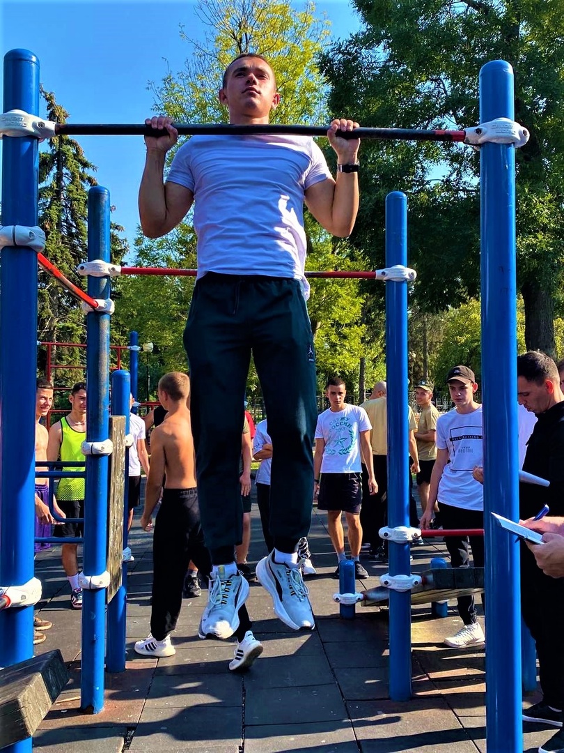 11 сентября 2023 года в рамках Всероссийского дня трезвости на спортивной площадке парка Никольского г.Ейска проведены соревнования «Лестница жизни» по подтягиванию на перекладине в «лесенку».