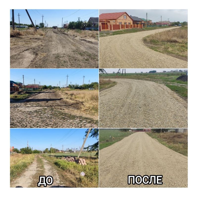Ремонт дорог в гравийном исполнении по ул. Октябрьской и пер.Степному только завершили. И уже сегодня движение по соединяющему две части села участку значительно оживилось. Это позволяет местным жителям сокращать путь к социально значимым объектам, разгрузив движение по основным улицам поселения.