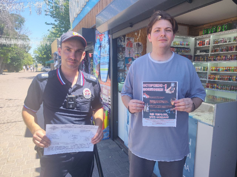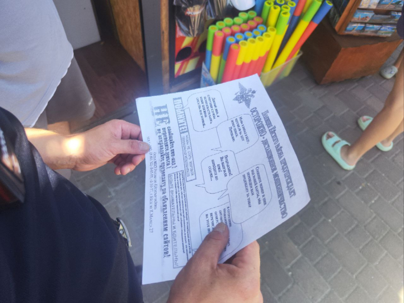 В рамках оперативно - профилактического мероприятия «Курорт 2024» и в рамках информационной кампании по кибербезопасности "Клади трубку" сотрудники патрульно-постовой службы полиции Отдела МВД России по Ейскому району совместно с Общественным советом, провели беседы с жителями города. Правоохранители проинформировали граждан о наиболее распространенных видах мошенничества с использованием мобильной связи и сети Интернет, так же предупредили жителей и гостей города о соблюдении правил финансовой безопасности.