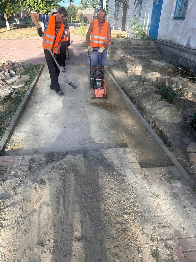 На данный момент завершены работы по заливке бетонного основания. Ведутся работы по укладке тротуарной плитки к общественному туалету, устраняются дефекты в виде провалов на пешеходных дорожках. В ближайшее время начнутся работы по установке бортовых камней на пешеходной дорожке вдоль улицы Советской.