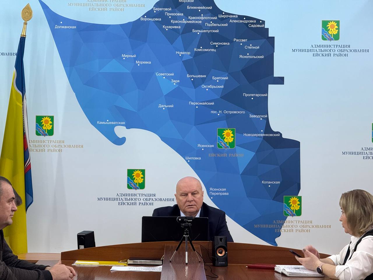 Совещание прошло в режиме видеоселектора, под председательством заместителя главы район Михаила Дьяченко в нём приняли участие и.о. главы города Ейска Денис Квитовский, его заместители, главы сельских поселений, эксплуатанты аттракционов Ейского района.