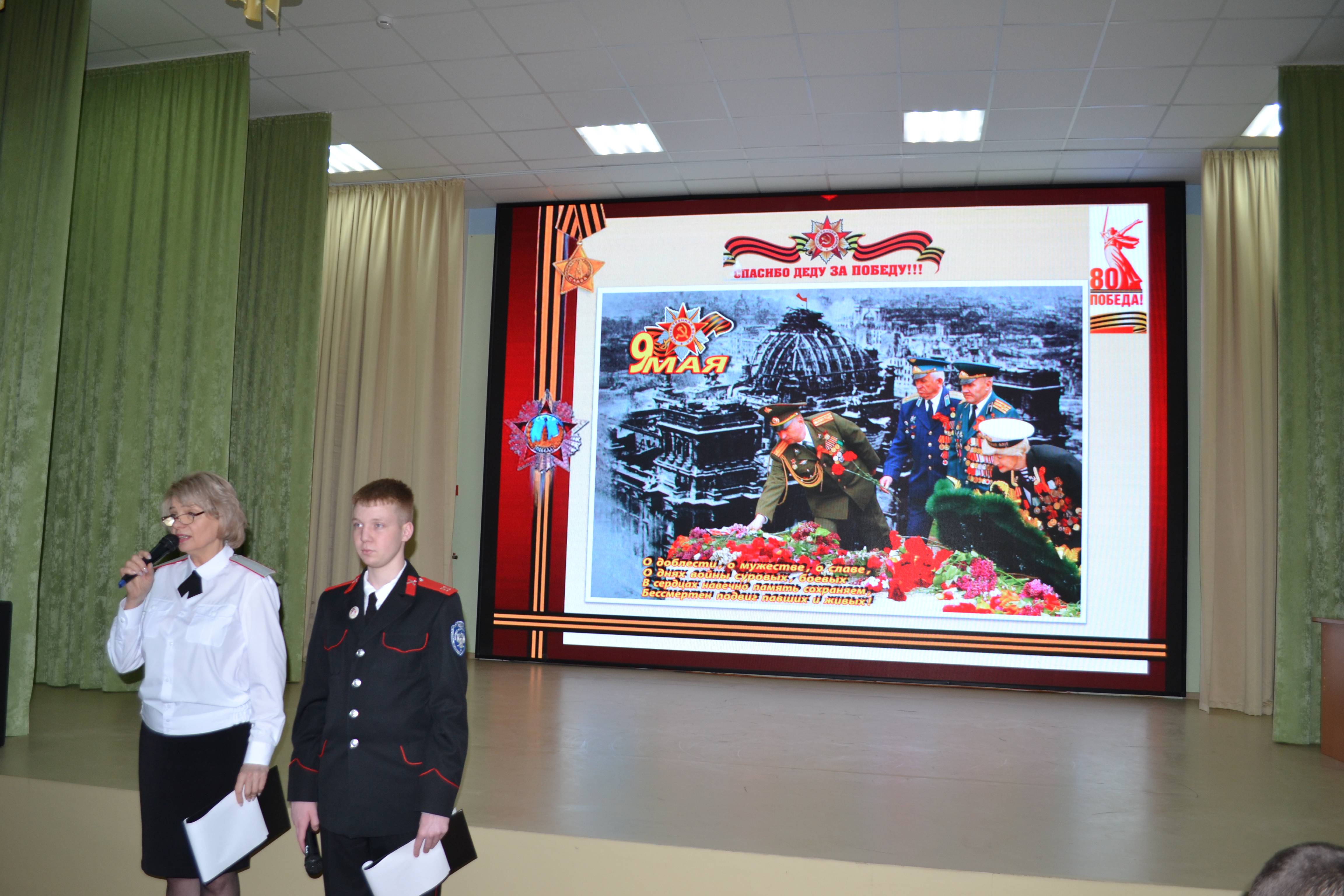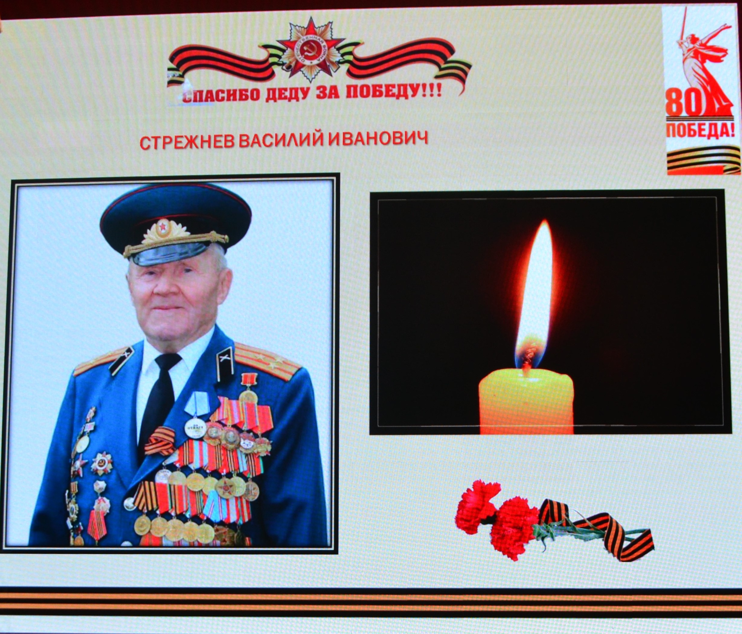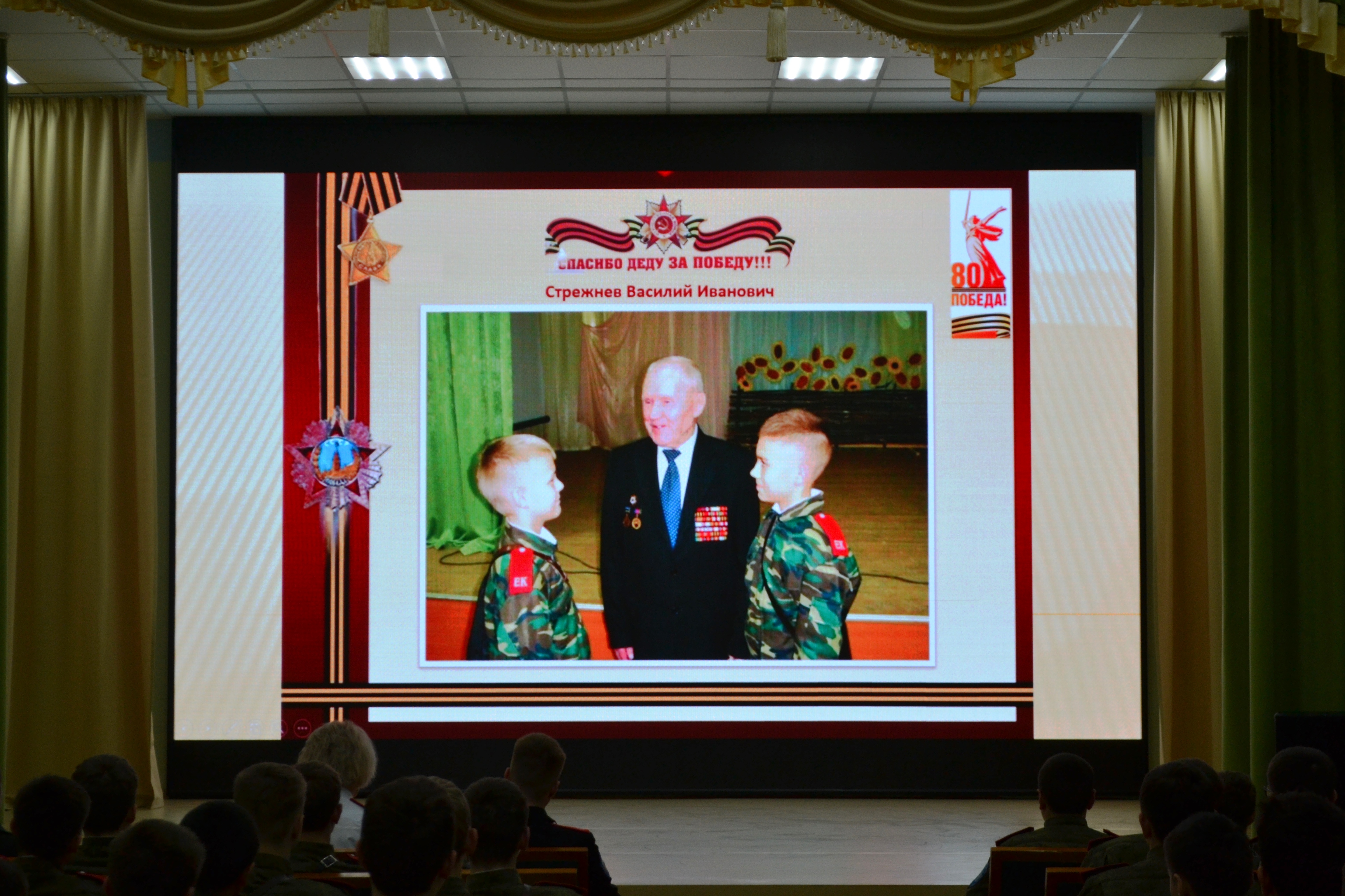 12 апреля исполняется 1 год, как ушёл из жизни наш дорогой ветеран Великой Отечественной войны, Почётный кадет Ейского казачьего корпуса, участник Курской битвы, освобождения Белоруссии, Польши и штурма Берлина Василий Иванович Стрежнев. К этому событию 8 апреля в корпусе прошёл урок памяти «В сердцах навечно имя сохраним!», который провели педагог-организатор Сербунова Елена Анатольевна и кадет 10 сотни Редька Ярослав. У корпуса с Василием Ивановичем и его семьей сложились давние дружеские связи. Он неоднократно посещал корпусные мероприятия. В последние годы, когда пожилому ветерану войны стало трудно передвигаться, больше мы посещали его на дому, где организовывали встречи с чаепитием, тематические беседы, выездные концертные программы, о чём к просмотру присутствующим в актовом зале была представлена видеопрезентация.