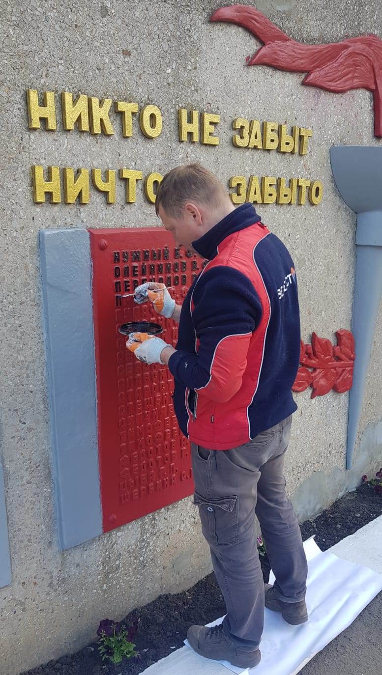 Работы, в том числе в рамках подготовки к 80-летию Великой Победы, выполняет ИП Цедрикова Наталья Евгеньевна. Благодаря усилиям подрядчика, обелиски и памятники приобретают достойный вид. Ремонт включает в себя очистку и покраску элементов этих значимых объектов.