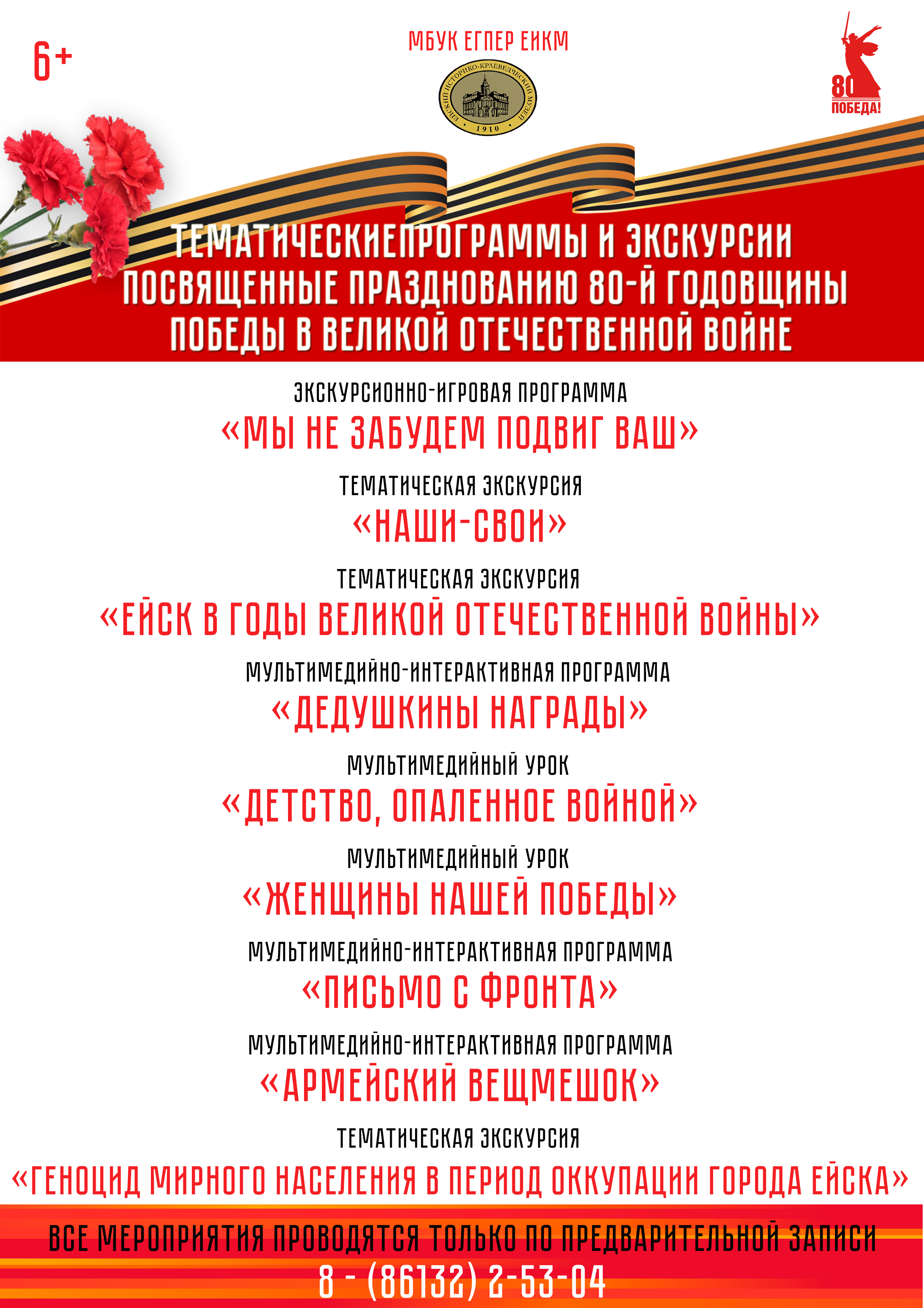 Афиша мероприятий, приуроченных ко Дню Победы Ейского в историко-краеведческом музее им. В.В. Самсонова