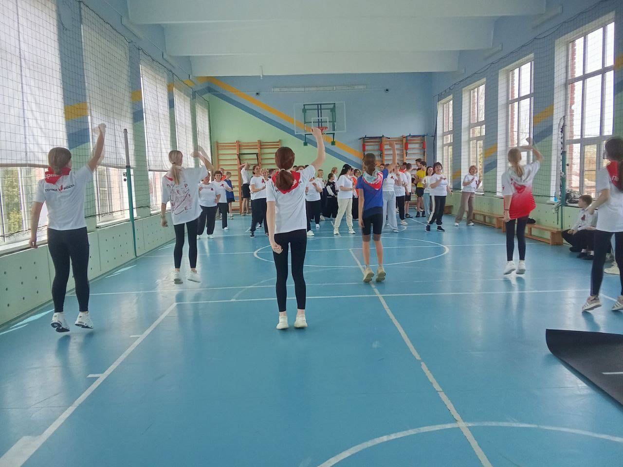 Перед выполнением спортивных испытаний прошла разогревающая разминка, после которой все участники настроились на успешное выполнение нормативов.