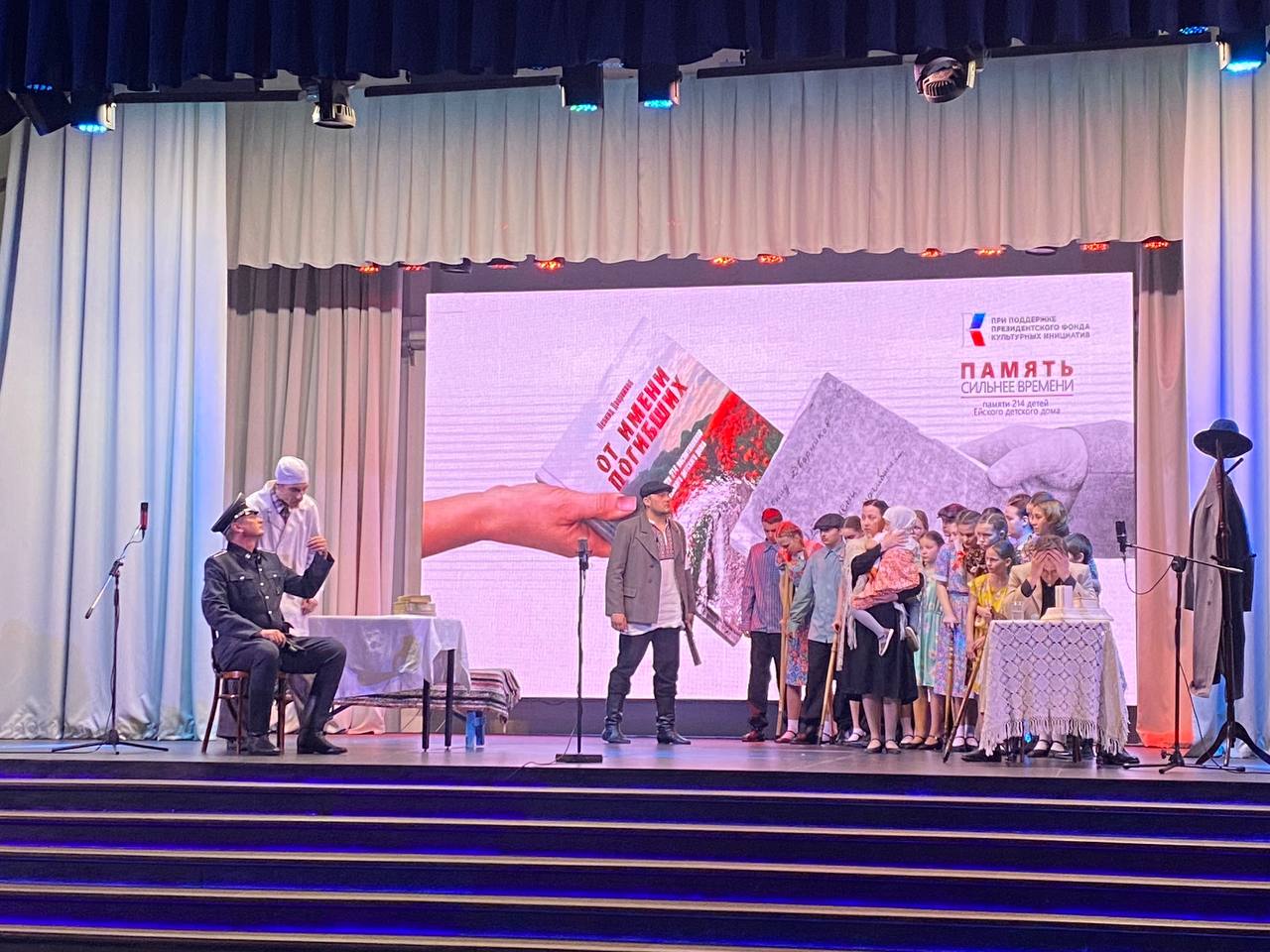 Артисты Ейского народного музыкального театра им. А.А. Колесникова, исполняя роли детей, показали зрителям не только ужас произошедшего, но и силу духа маленьких героев, которые даже в лице смерти сохранили веру в добро и справедливость.