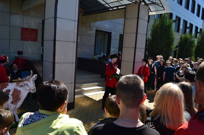 Самым зрелищным событием стало торжественное построение кадетских подразделений на плацу с выносом знамени корпуса, филигранным дефиле взвода барабанщиков, лихой казачьей джигиткой и песнями в исполнении вокальной группы «Ейские кадеты».